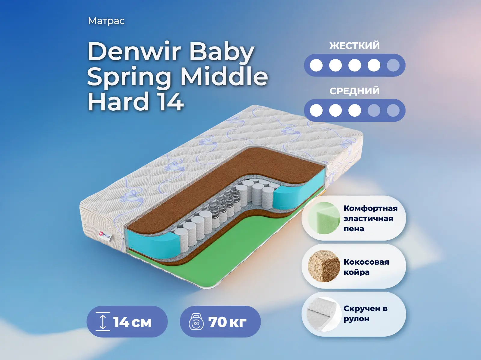 Детский матрас Denwir Baby Spring Middle Hard 14 90х200 смАртикул С-114263