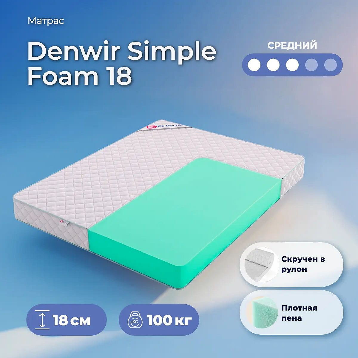 Матрас «Denwir Simple Foam 18» — средней жесткости, которая комфортна большинству людей среднего телосложения. Это — оптимальный вариант и детям, и взрослым, и пожилым людям.