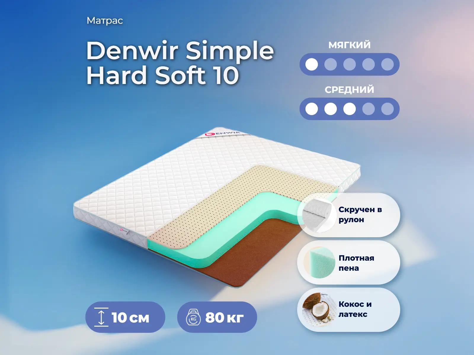 Матрас Denwir Simple Hard Soft 10 65х210 смАртикул С-114138