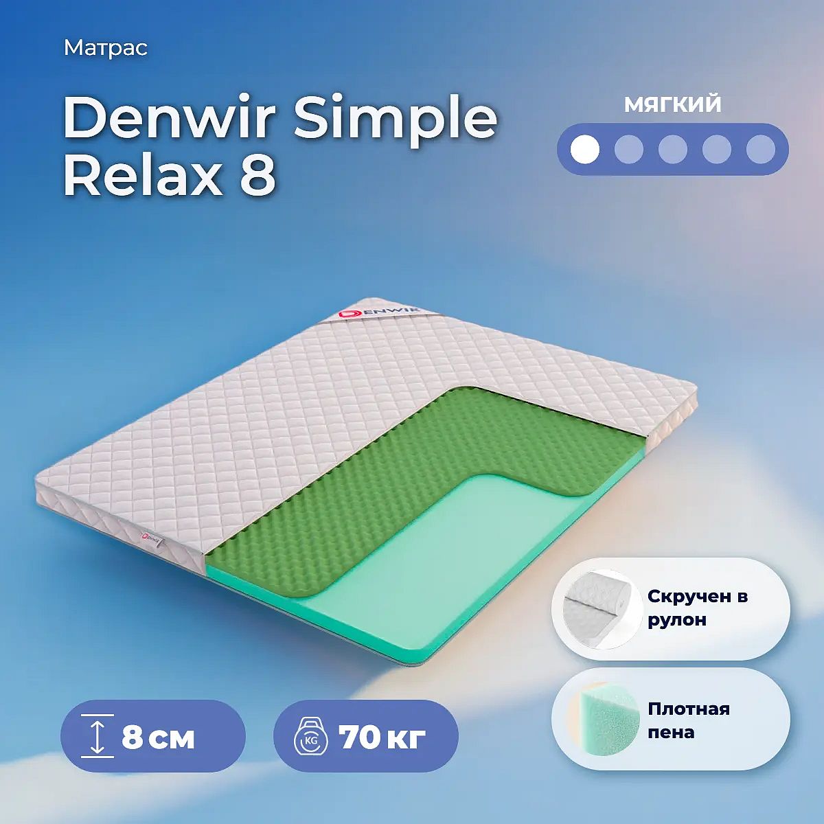 Мягкий матрас «Denwir Simple Relax 8» отлично подойдет человеку с небольшим весом, ценителю комфорта.