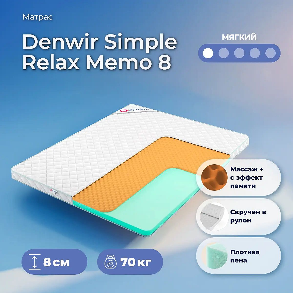 Мягкий матрас «Denwir Simple Relax Memo 8» отлично подойдет человеку с небольшим весом, ценителю комфорта.