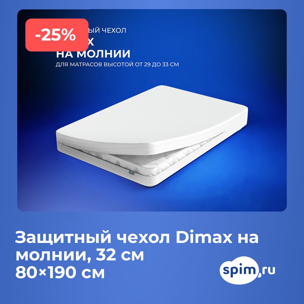 Наматрасник «На молнии, 32 см» в виде чехла на молнии полностью закрывает матрас со всех сторон, защищая его от влаги, пыли и износа.
