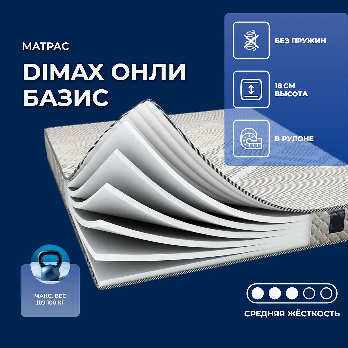 Матрас «Dimax Онли Базис» — средней жесткости, которая подходит большинству людей среднего телосложения. Это — универсальный выбор и детям, и взрослым, и пожилым людям.