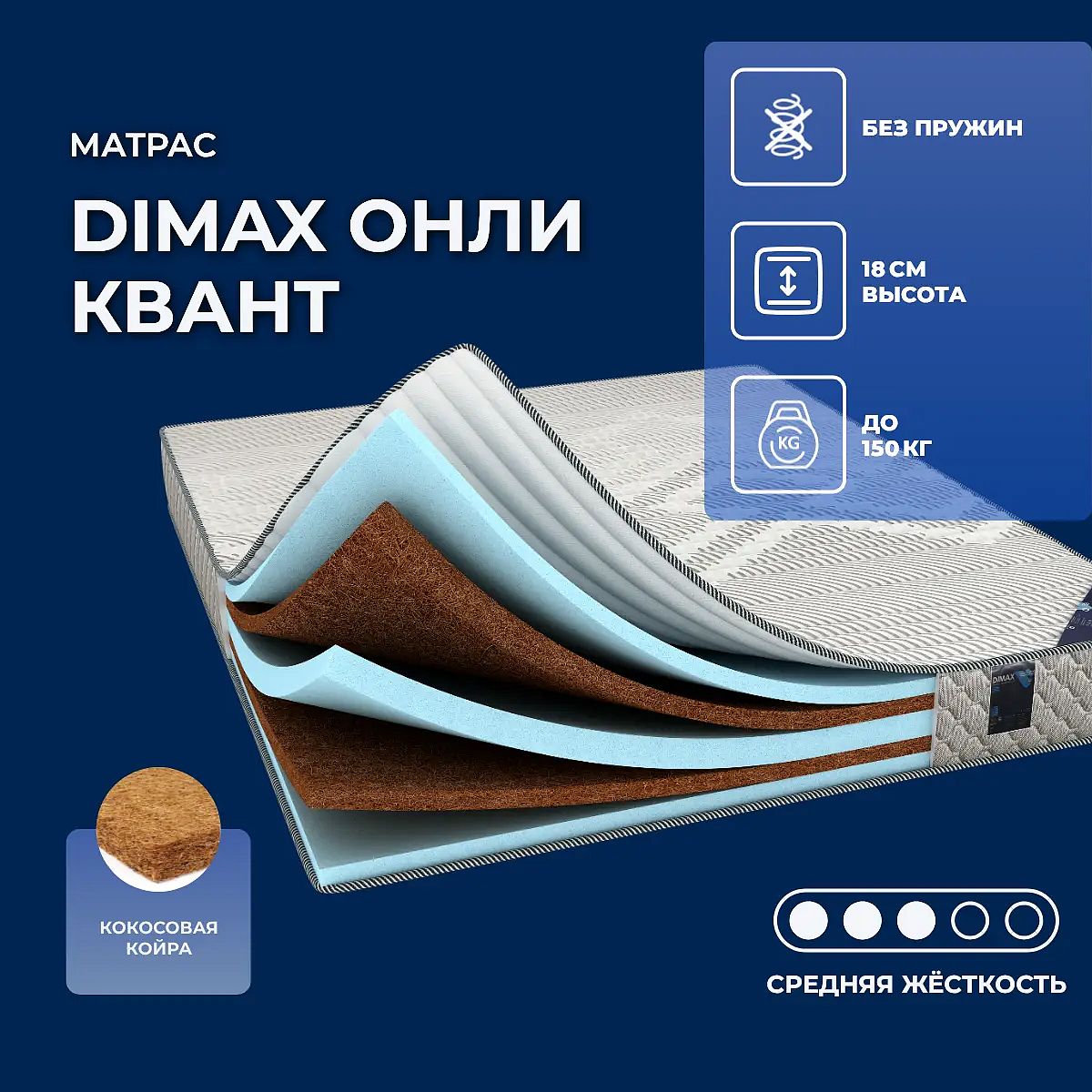 Кокос — натуральный материал, койра отлично дышит, придает матрасу «Онли Квант» жесткость и упругость.