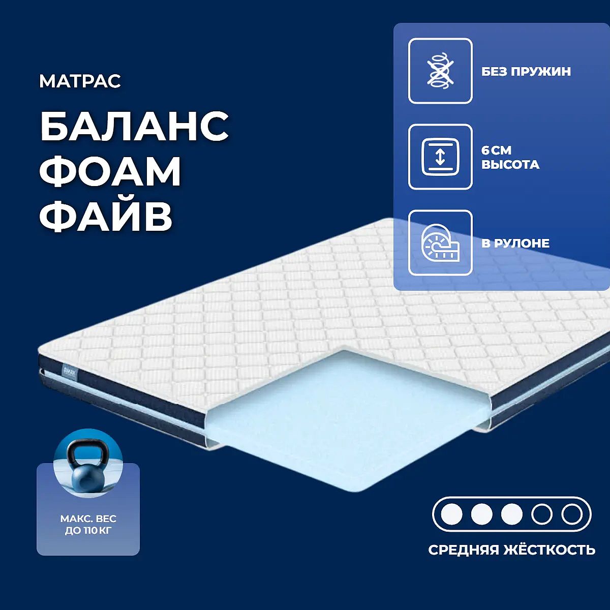 Матрас Баланс Фоам Файв рассчитан на нагрузку не более 110 кг на одно спальное место.