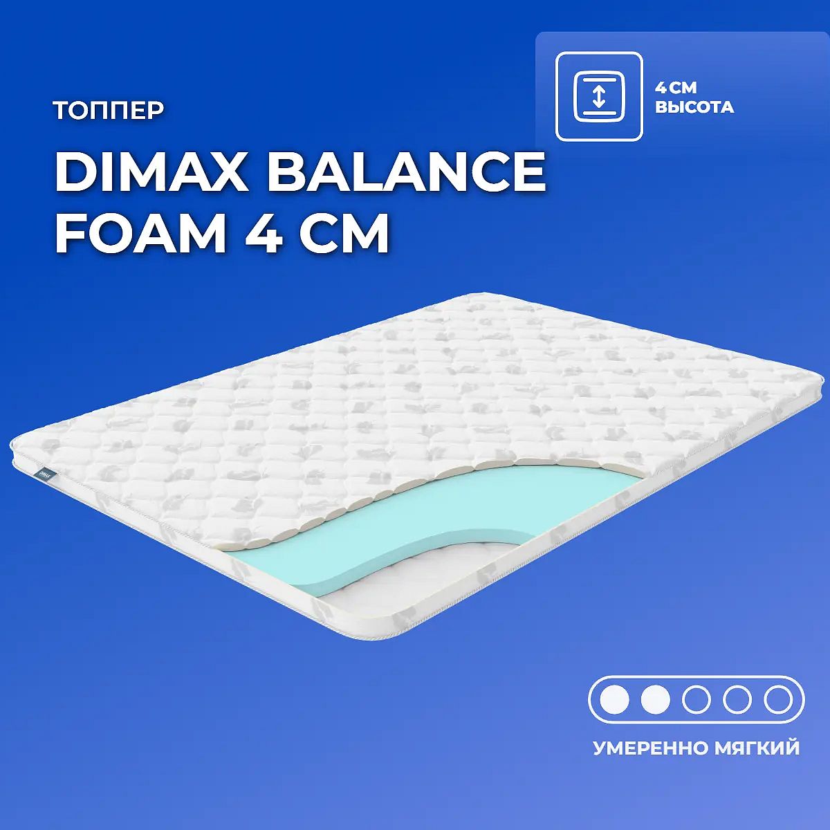 Средне-мягкий матрас «Dimax Balance foam 4 см» просто создан для настоящего ценителя комфорта. Такой вариант отлично подходит людям с небольшим весом.