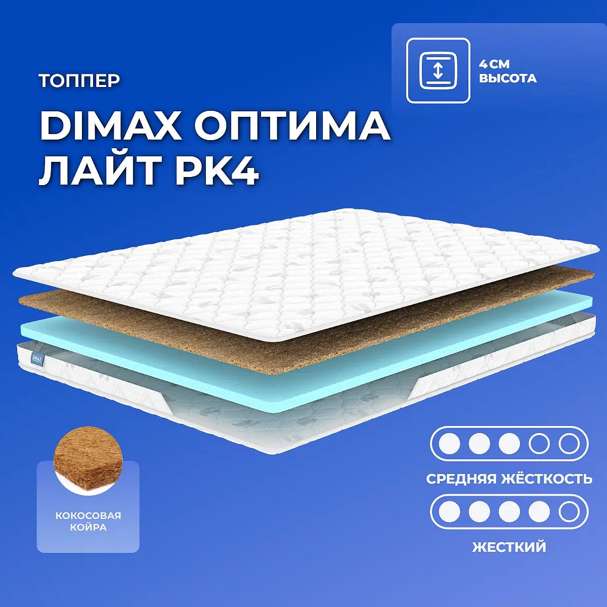 Кокос — натуральный материал, койра отлично дышит, придает матрасу «Оптима Лайт PK4» жесткость и упругость.