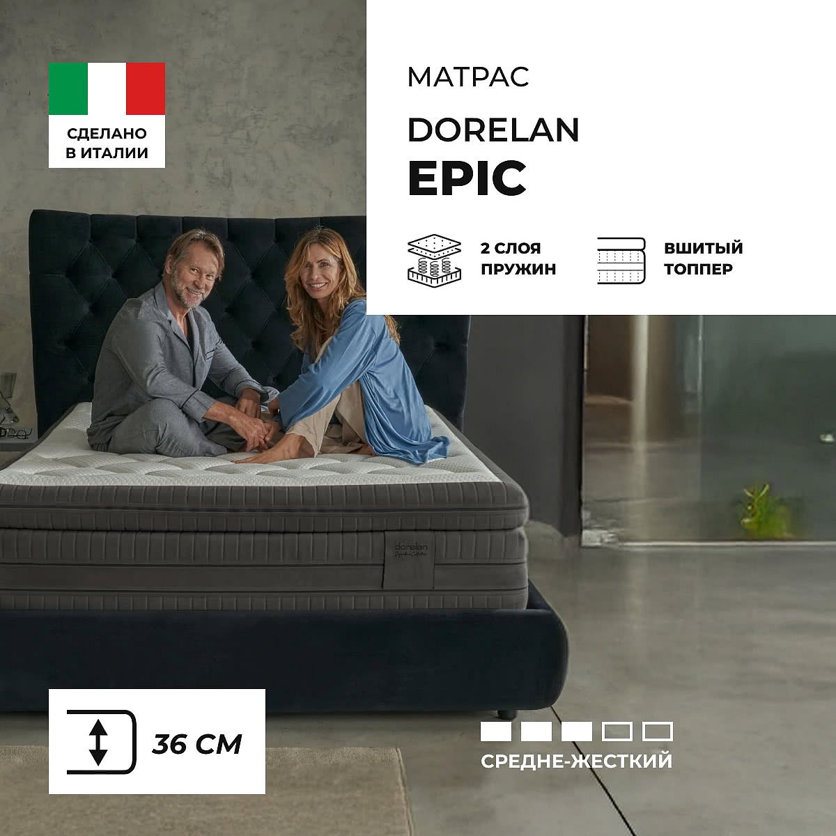 Матрас Epic относится к высоким матрасам. Перед покупкой убедитесь, что он подойдет к вашей кровати.