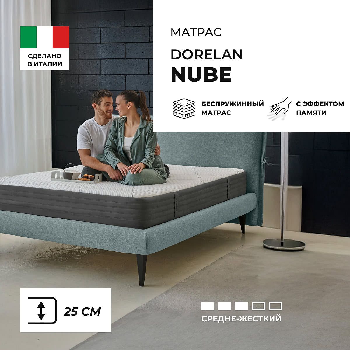 Матрас «Dorelan Nube» — средней жесткости, которая комфортна большинству людей среднего телосложения. Это — универсальный выбор и детям, и взрослым, и пожилым людям.