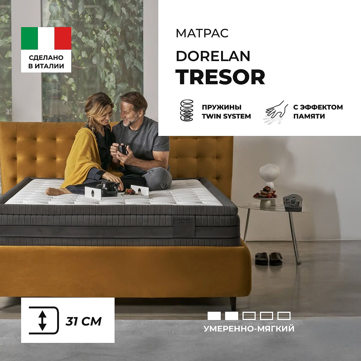 Средне-мягкий матрас «Dorelan Tresor» — для истинного ценителя комфорта. Такая модель хорошо подходит людям с небольшим весом.