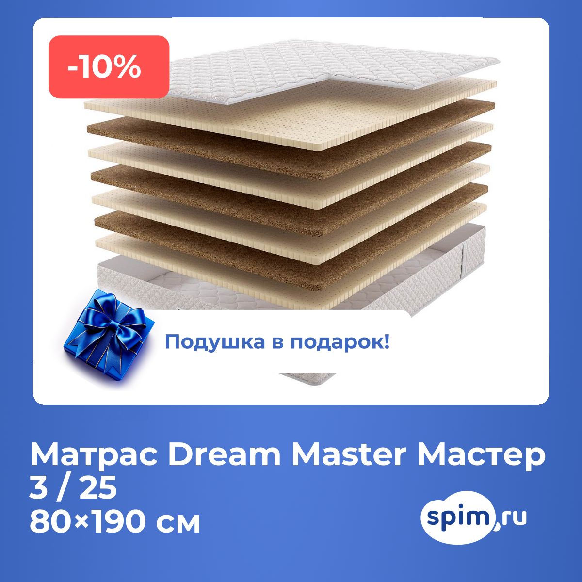 При покупке любого матраса, кроме моделей из серий "Топпер", вы получите в подарок: