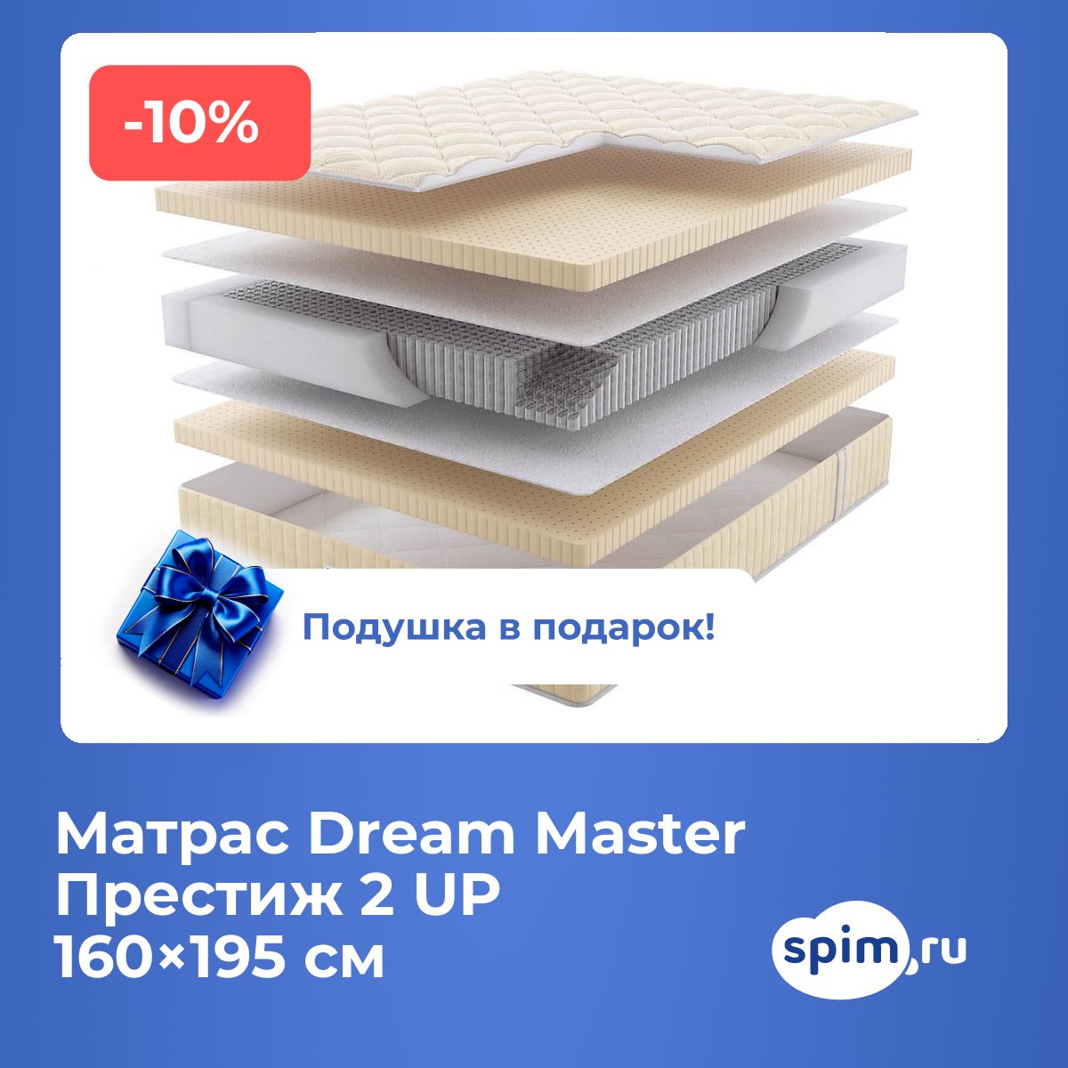 При покупке любого матраса, кроме моделей из серий "Топпер", вы получите в подарок: