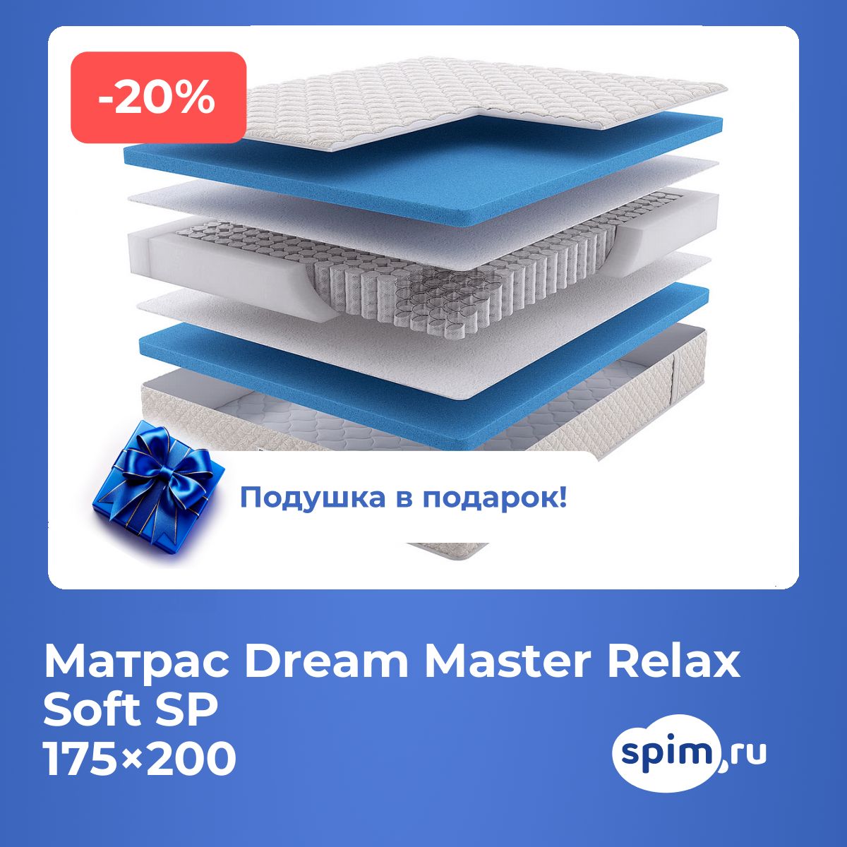 При покупке любого матраса, кроме моделей из серий "Топпер", вы получите в подарок: