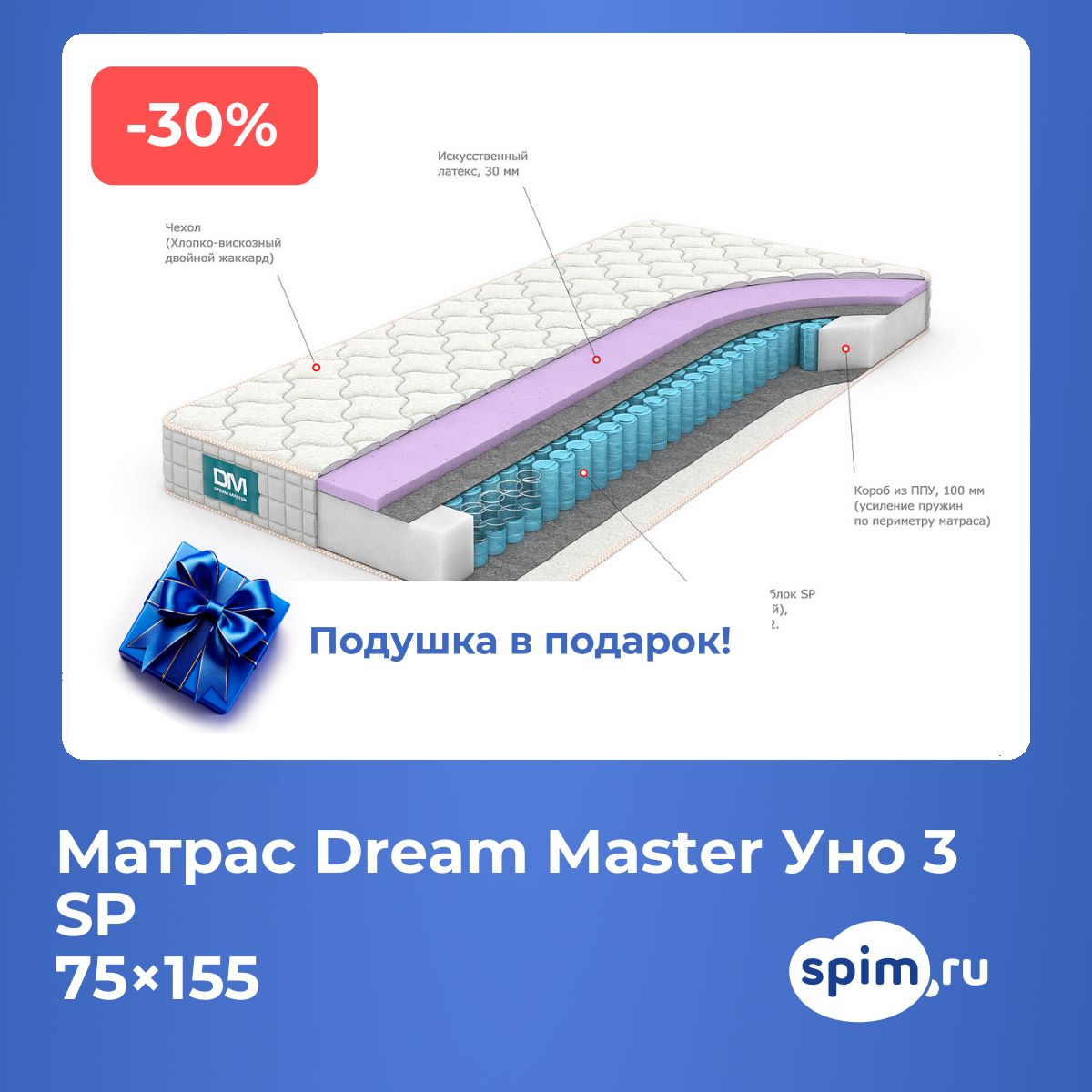 Матраc Dream Master Уно 3 SP 75х155 смАртикул С-97000