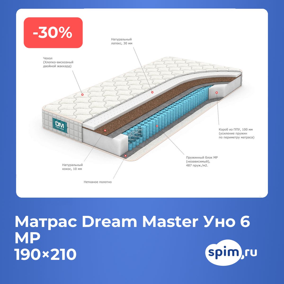 Матраc Dream Master Уно 6 MP 190х210 смАртикул С-97010