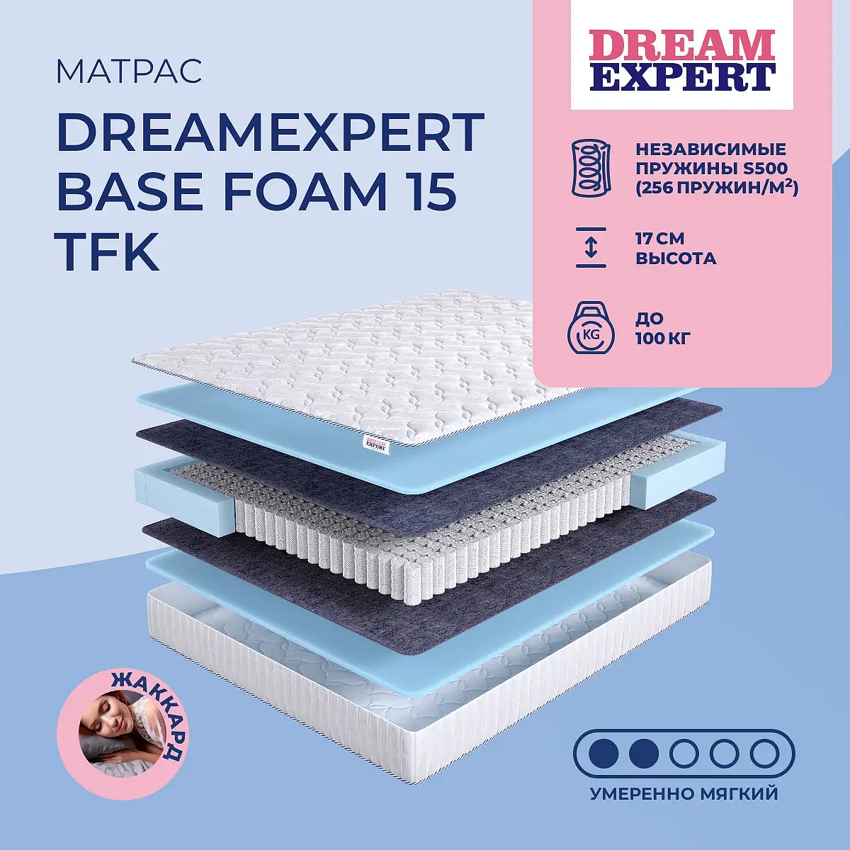 Средне-мягкий матрас «DreamExpert Base Foam 15 TFK» — для истинного ценителя комфорта. Такой вариант хорошо подойдет людям с небольшим весом.