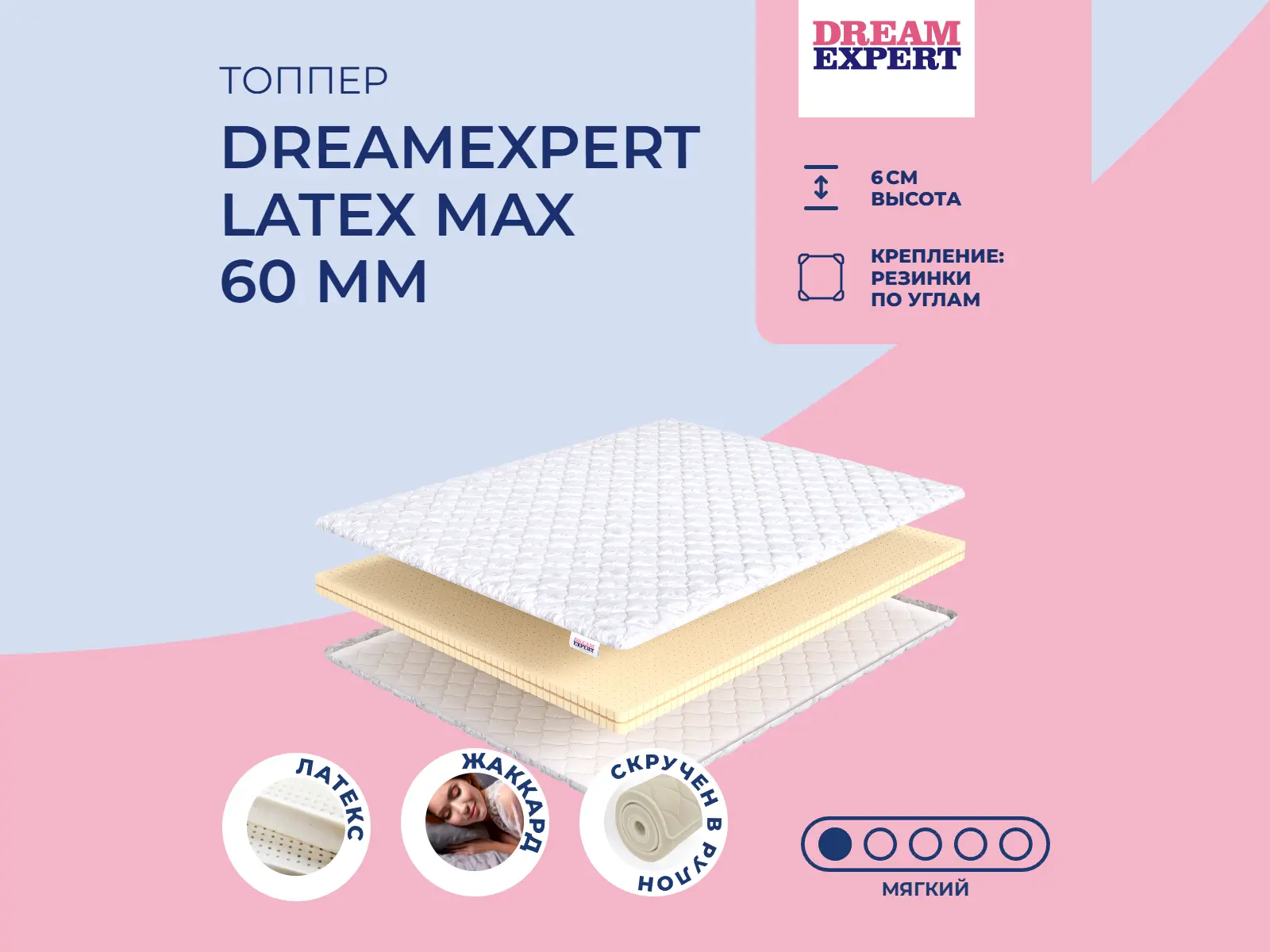 Мягкий матрас «DreamExpert Latex max 60 мм» отлично подойдет человеку с небольшим весом, предпочитающему высокий уровень комфорта.