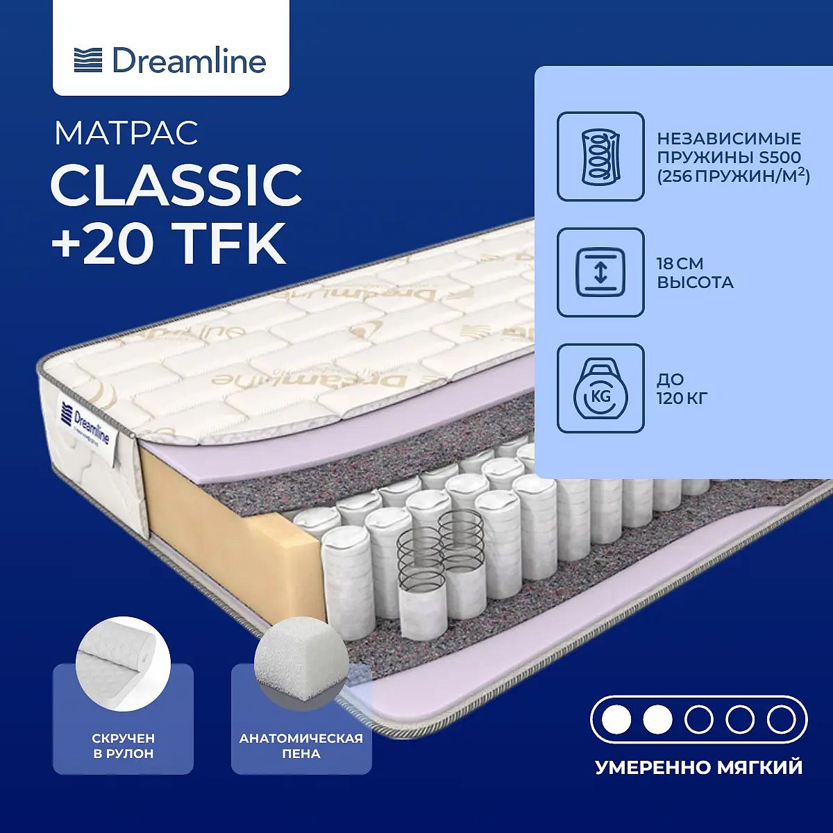 Средне-мягкий матрас «DreamLine Classic + 20 TFK» — для истинного ценителя комфорта. Такая модель отлично подойдет людям с небольшим весом.