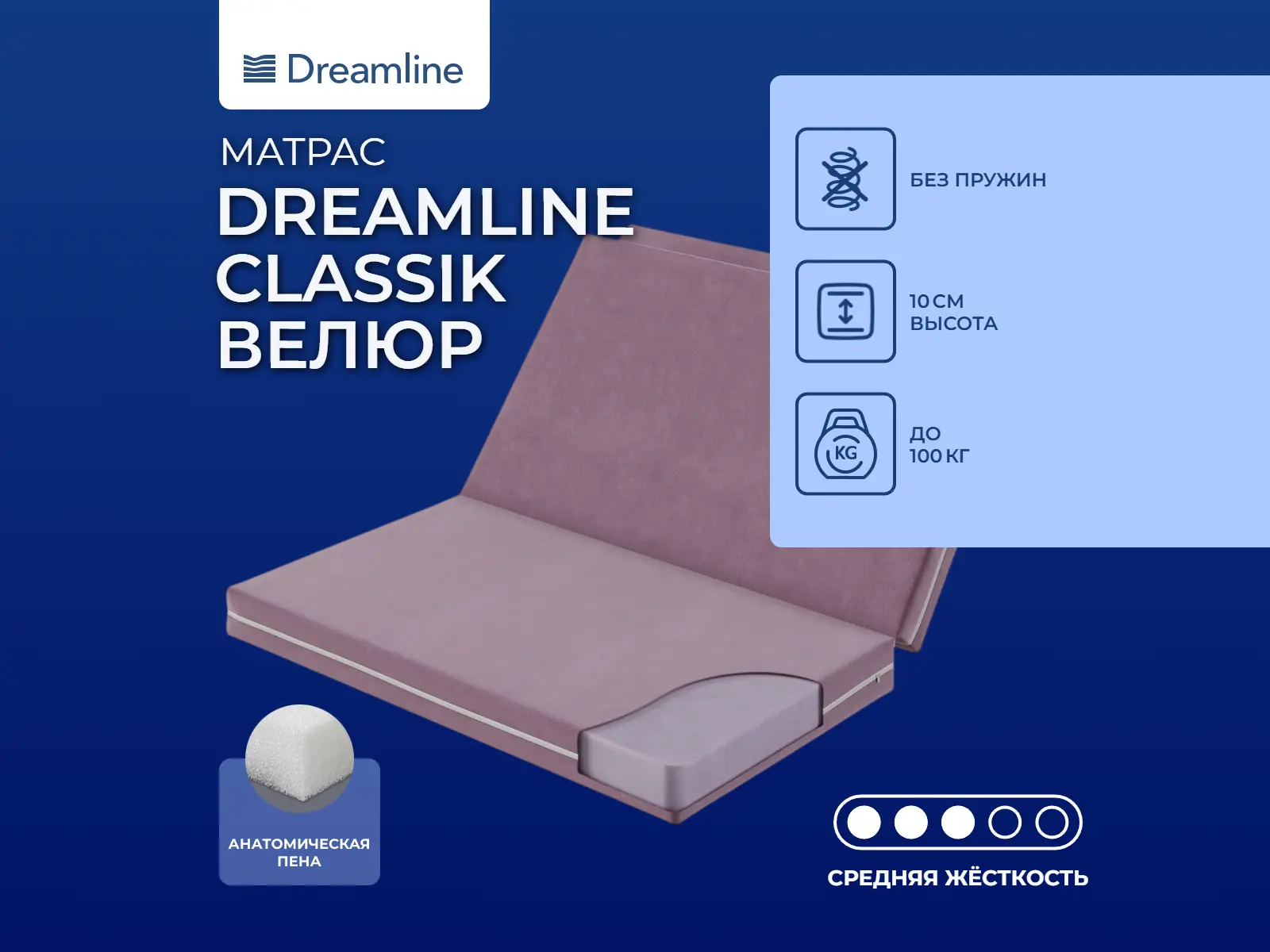 Матрас «DreamLine Classik велюр» — средней жесткости, которая подходит большинству людей среднего телосложения. Это — универсальный вариант и детям, и взрослым, и пожилым людям.