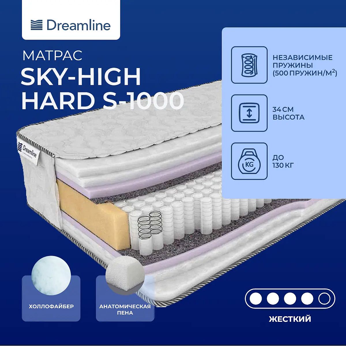 Матрас высокой жесткости «DreamLine Sky-high Hard S-1000» — оптимальный выбор для уверенной поддержки позвоночника. Именно такие модели обычно рекомендуют подросткам, спортсменам или людям с проблемами позвоночника.