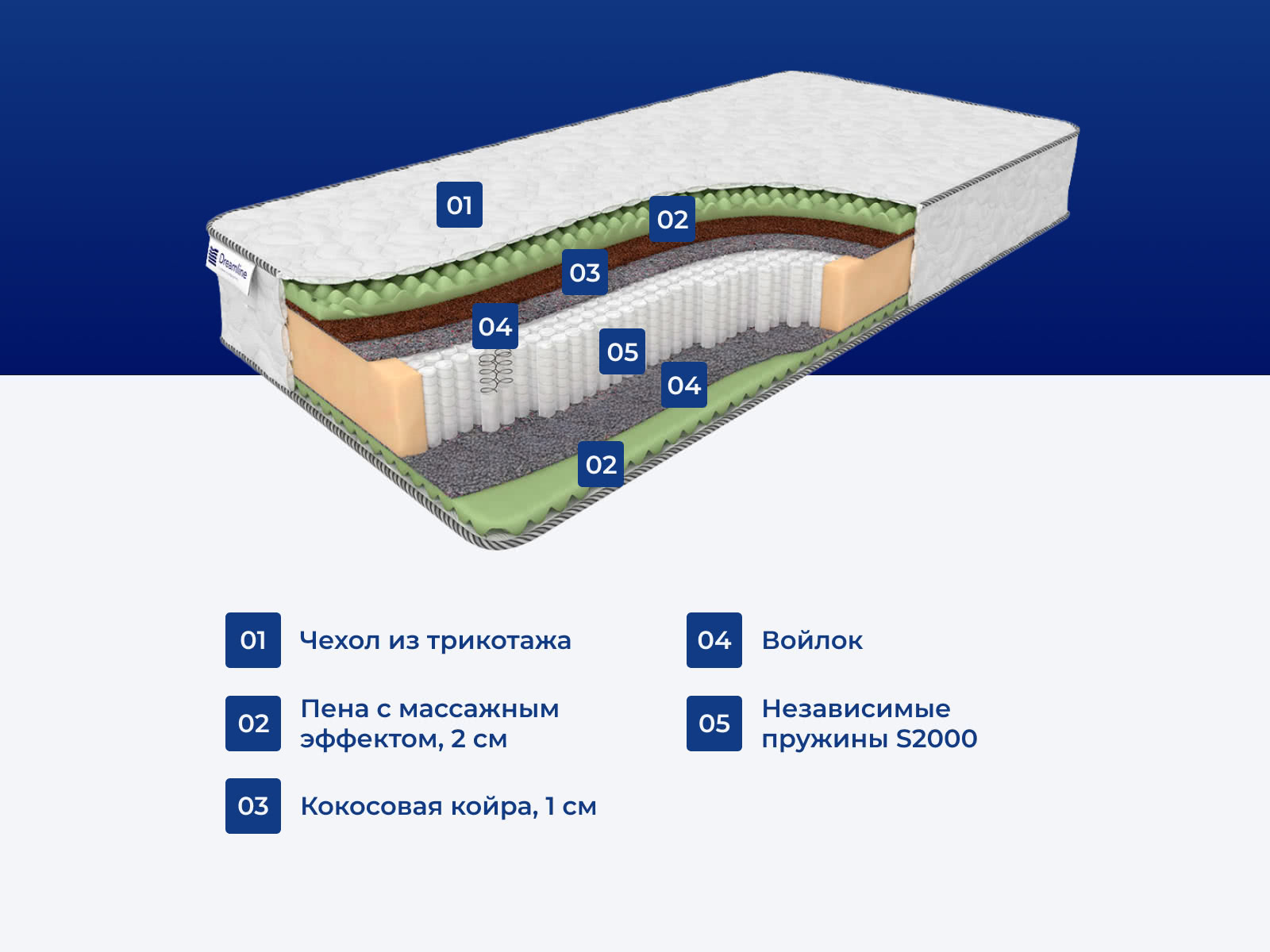 Кокос — натуральный материал, койра отлично дышит, придает матрасу «Supreme S2000» жесткость и упругость.