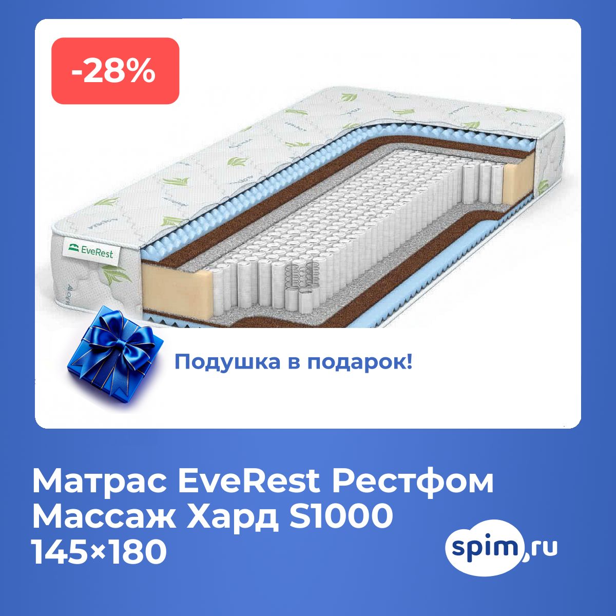 Матрас «EveRest Рестфом Массаж Хард S1000» — средней жесткости, которая комфортна большинству людей среднего телосложения. Это — универсальный выбор и детям, и взрослым, и пожилым людям.