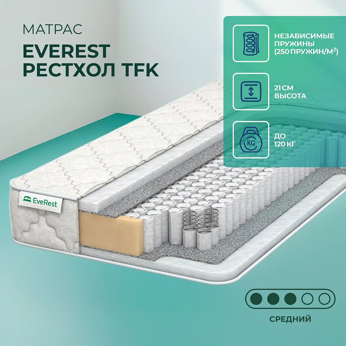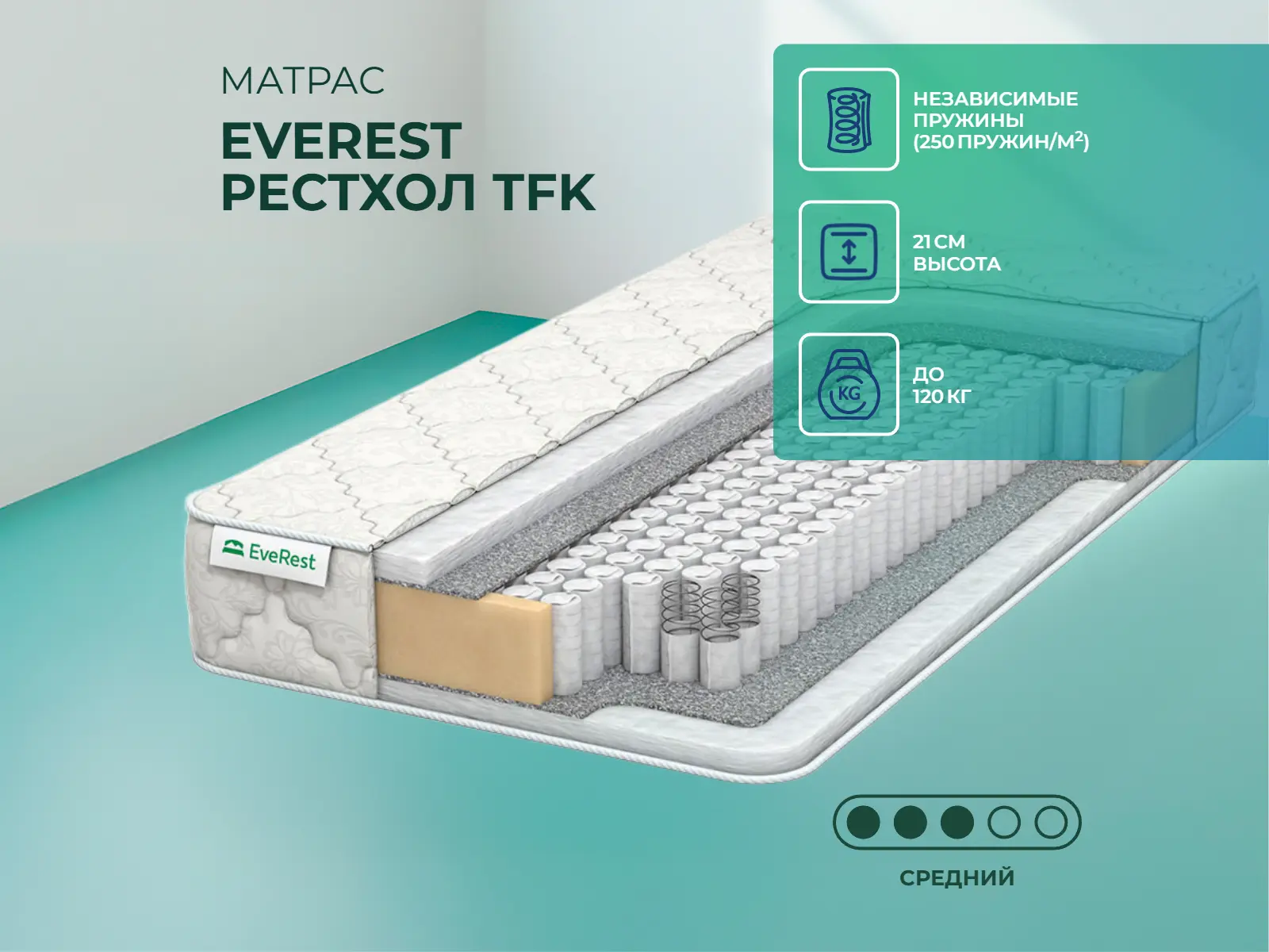 Матрас «EveRest Рестхол TFK» — средней жесткости, которая комфортна большинству людей среднего телосложения. Это — универсальный выбор и детям, и взрослым, и пожилым людям.