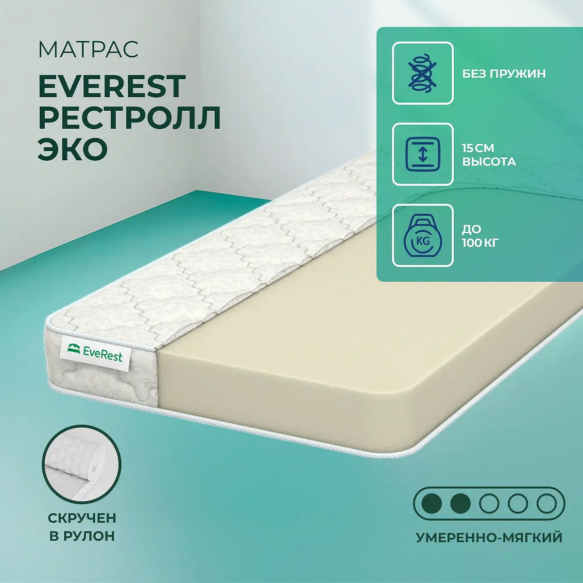 Средне-мягкий матрас «EveRest Рестролл Эко» — для истинного ценителя комфорта. Такой вариант хорошо подойдет людям с небольшим весом.