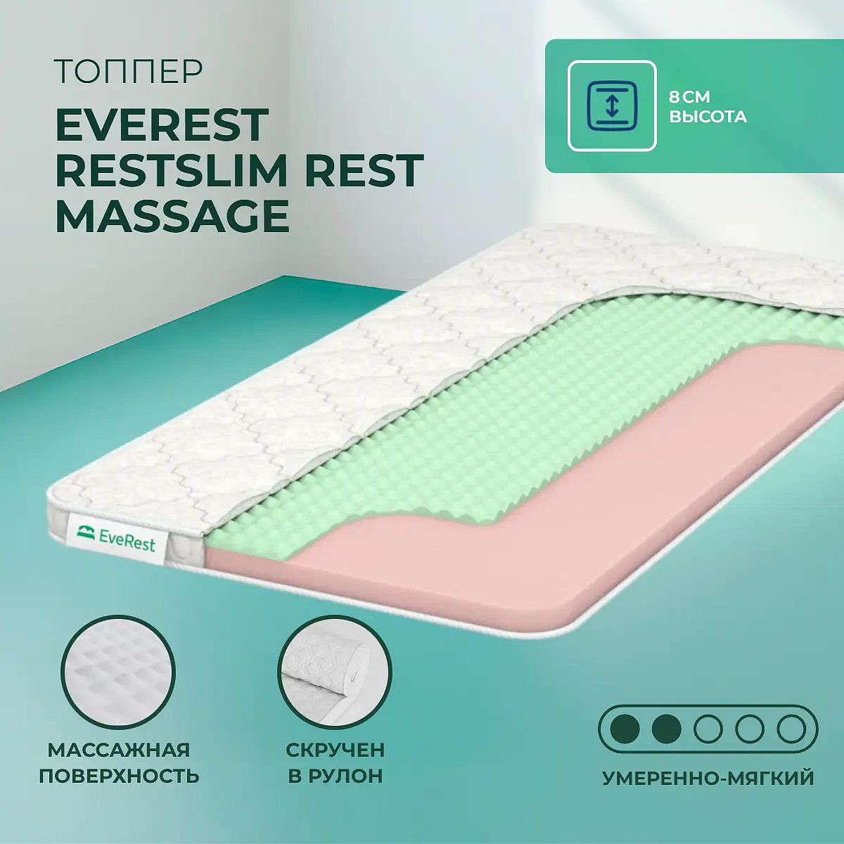 Средне-мягкий матрас «EveRest RestSlim Rest massage» просто создан для настоящего ценителя комфорта. Такой вариант отлично подойдет людям с небольшим весом.