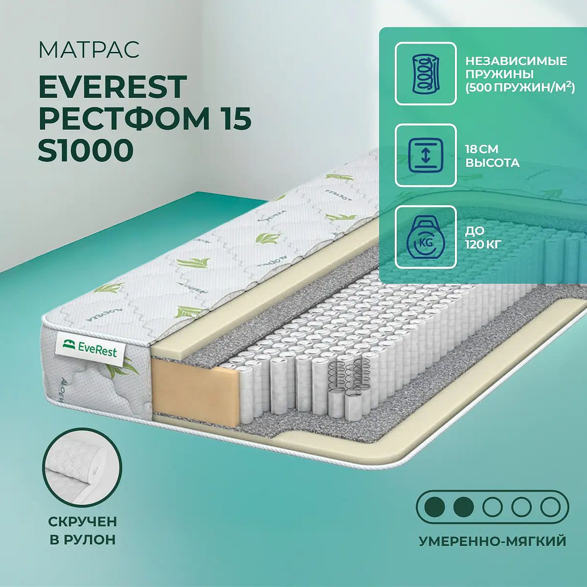 Средне-мягкий матрас «EveRest Рестфом 15 S1000» просто создан для истинного ценителя комфорта. Такая модель отлично подойдет людям с небольшим весом.