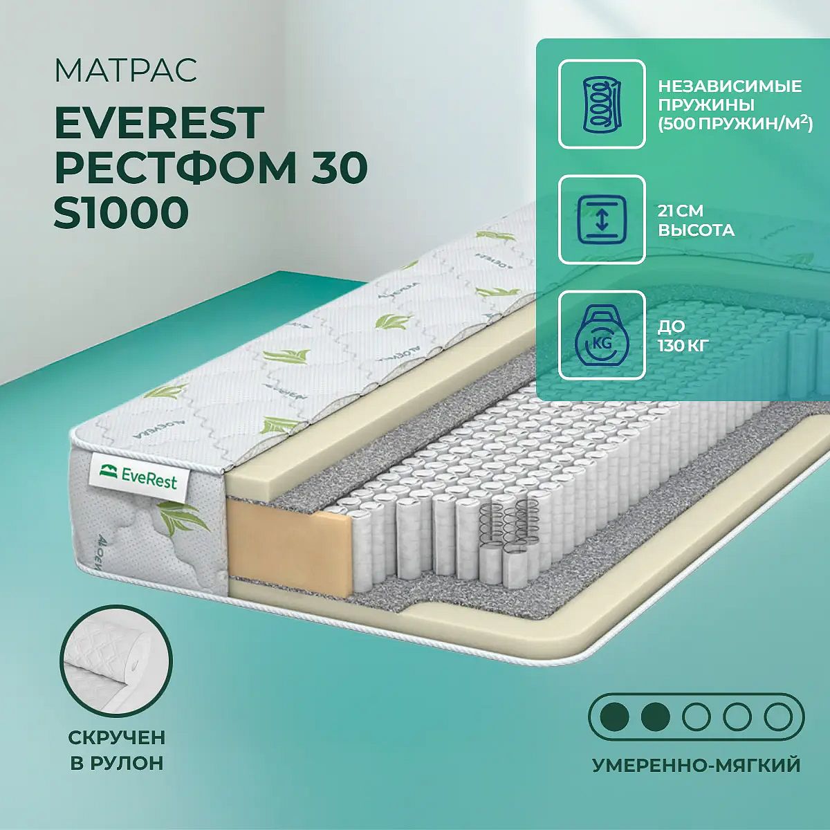 Средне-мягкий матрас «EveRest Рестфом 30 S1000» просто создан для настоящего ценителя комфорта. Такой вариант хорошо подойдет людям с небольшим весом.
