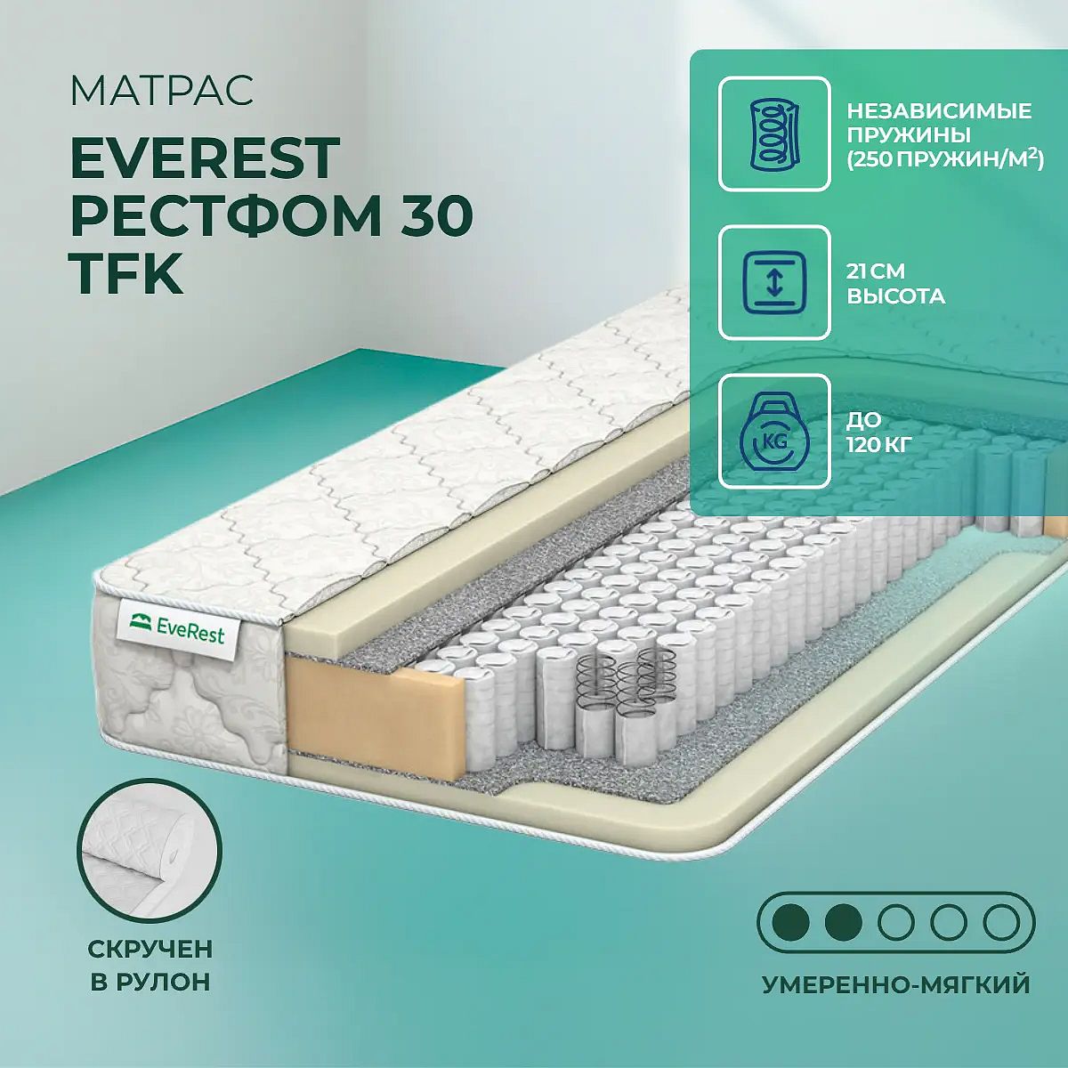 Средне-мягкий матрас «EveRest Рестфом 30 TFK» — для истинного ценителя комфорта. Такой вариант отлично подойдет людям с небольшим весом.