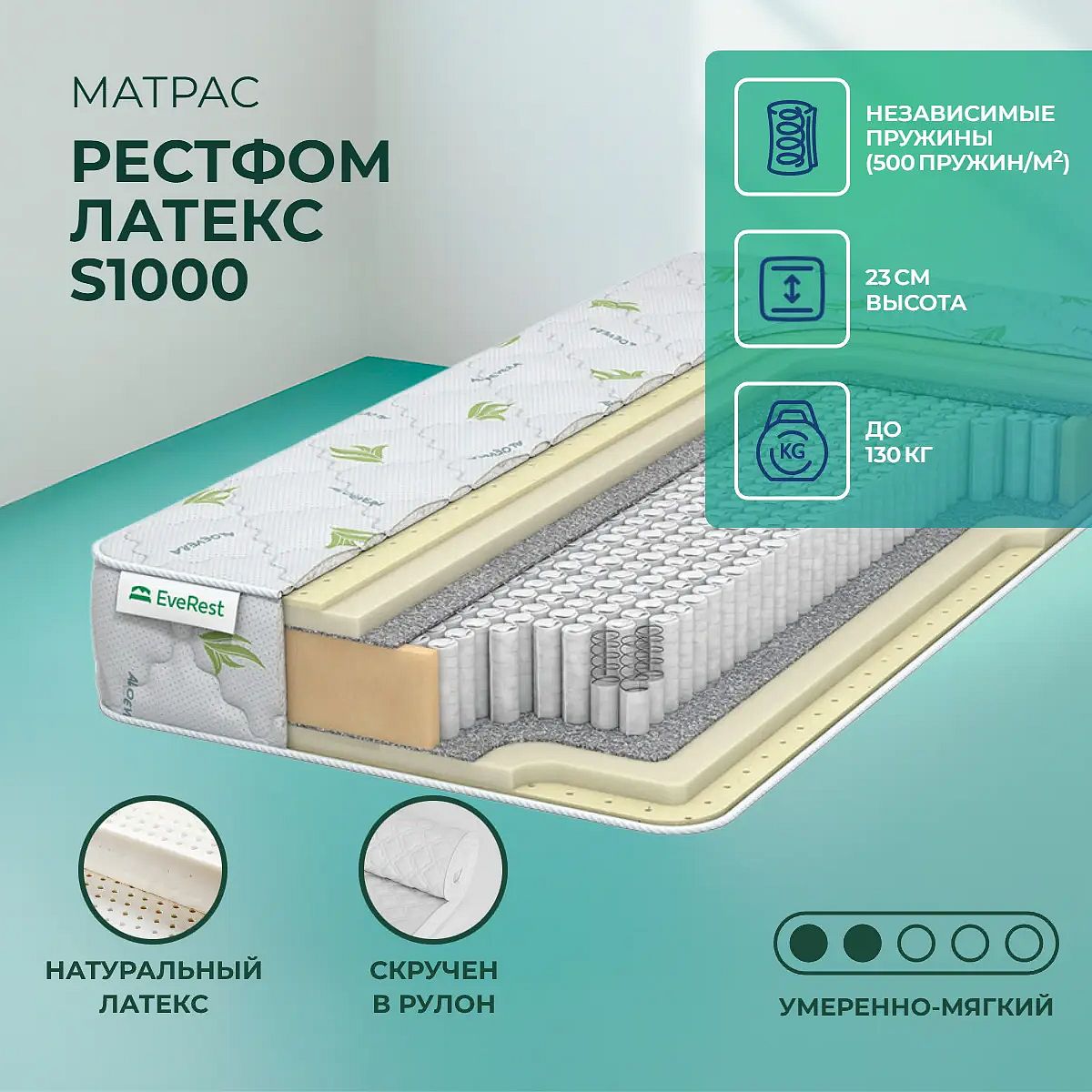 Средне-мягкий матрас «EveRest Рестфом латекс S1000» — для настоящего ценителя комфорта. Такой вариант хорошо подходит людям с небольшим весом.