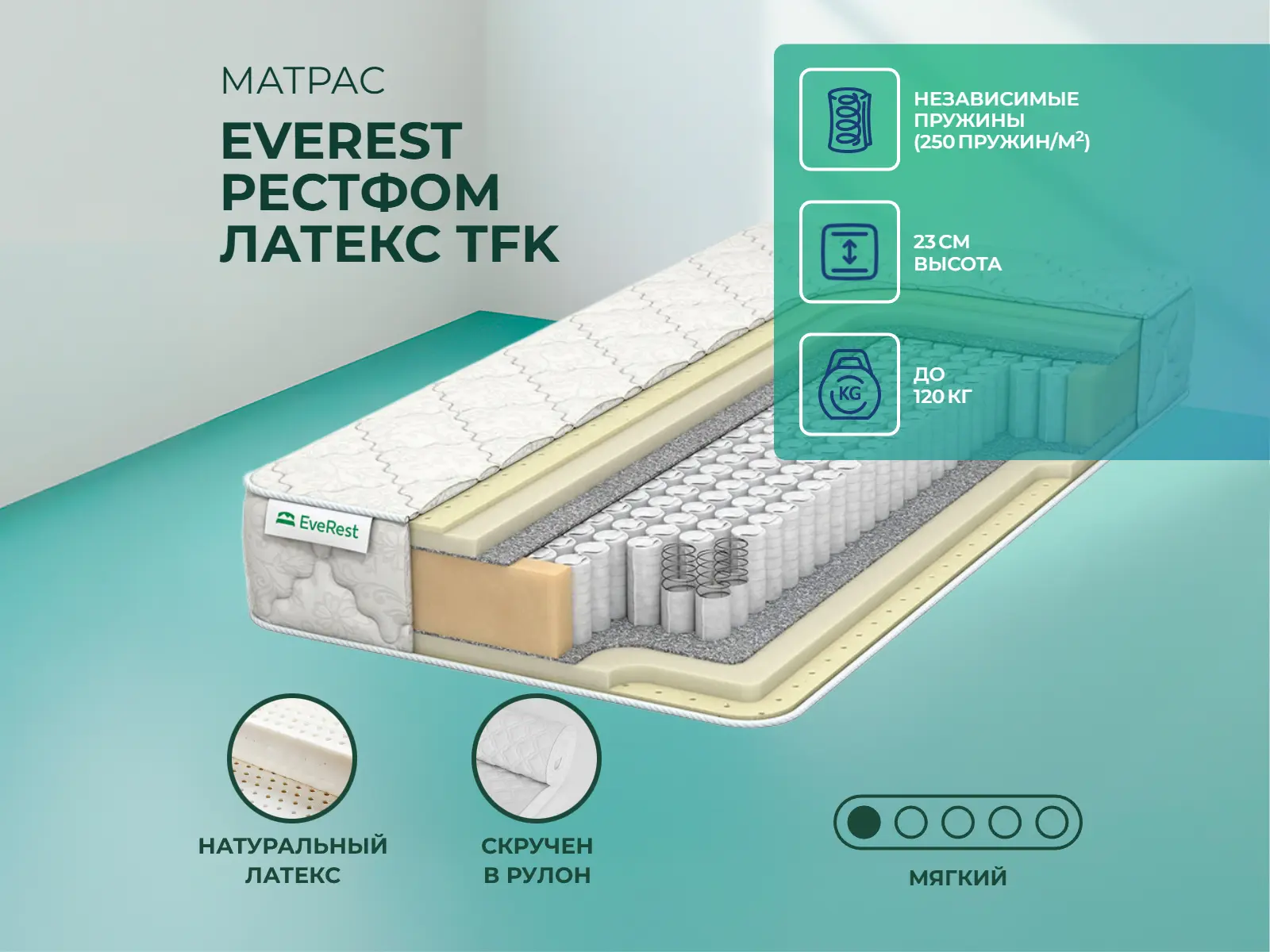 Мягкий матрас «EveRest Рестфом латекс TFK» отлично подойдет человеку с небольшим весом, ценителю комфорта.