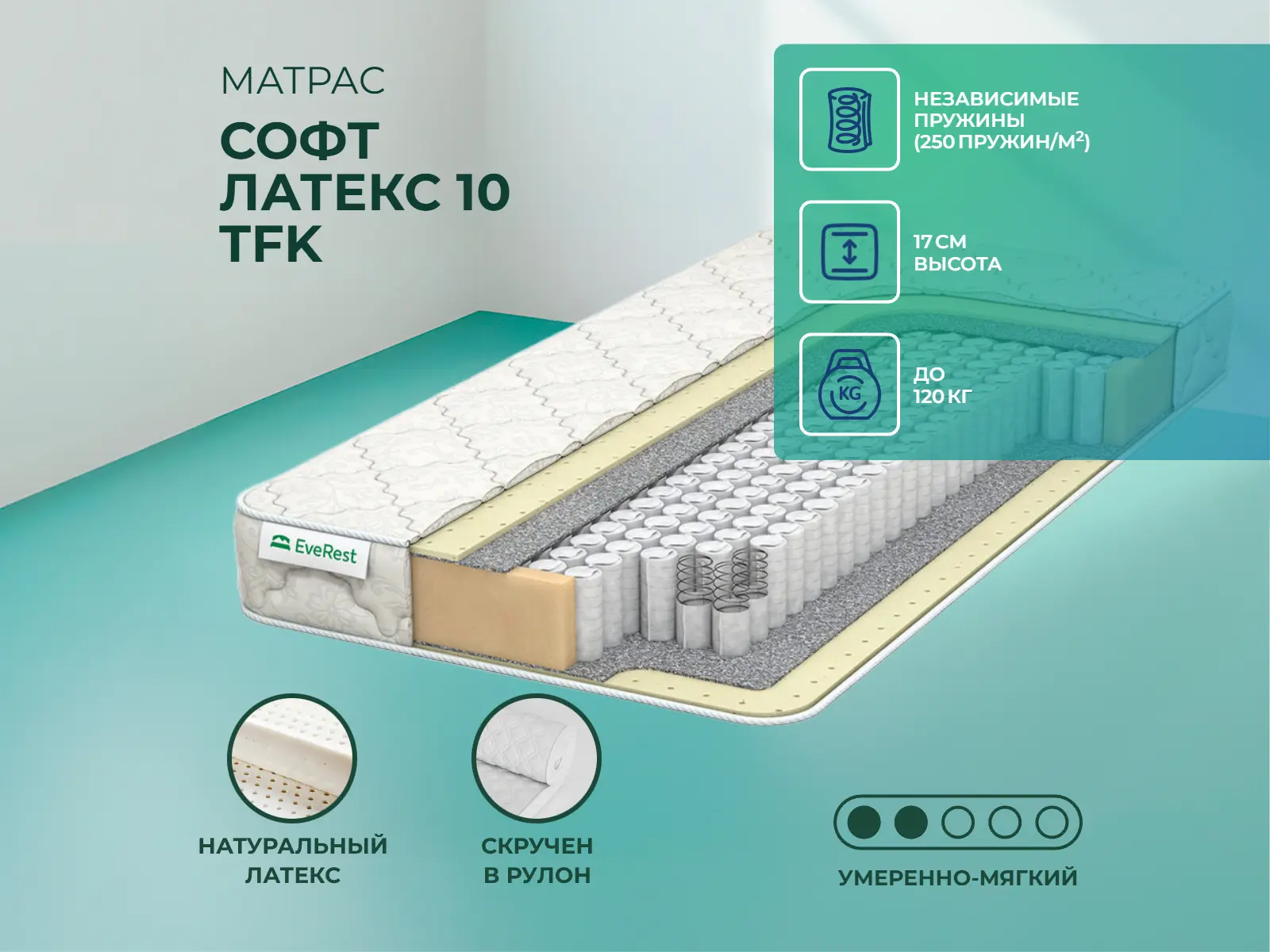 Средне-мягкий матрас «EveRest Софт латекс 10 TFK» просто создан для настоящего ценителя комфорта. Такая модель отлично подойдет людям с небольшим весом.