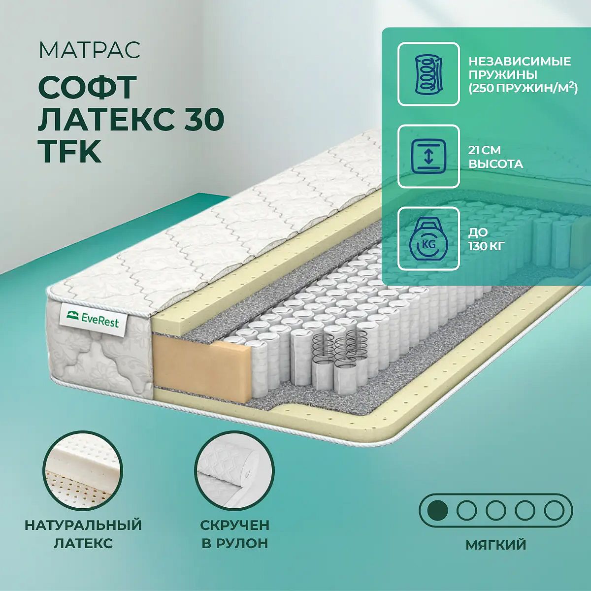 Матрас Софт латекс 30 TFK рассчитан на нагрузку не более 130 кг на одно спальное место.