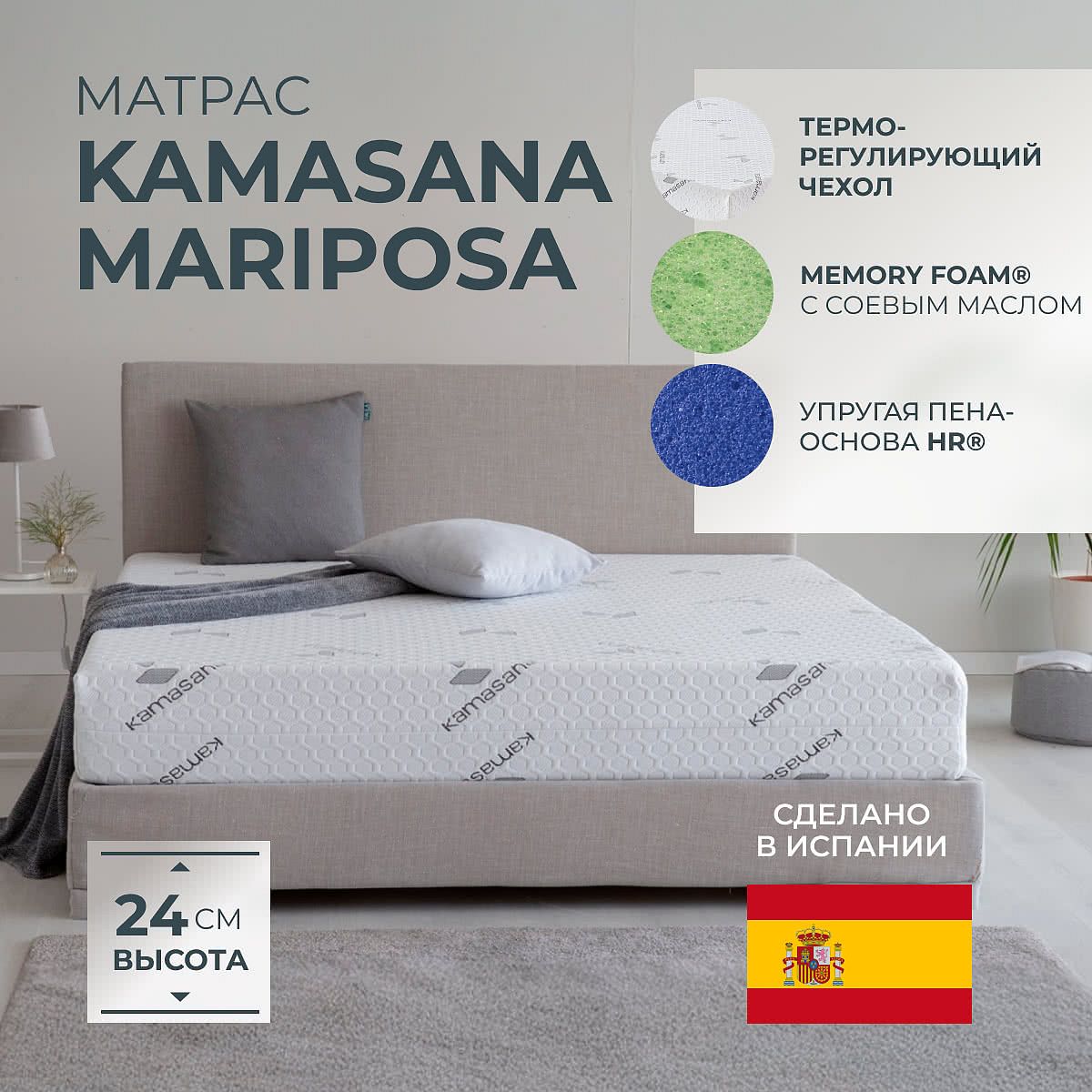 Матрас «Kamasana Mariposa» — средней жесткости, которая подходит большинству людей среднего телосложения. Это — универсальный выбор и детям, и взрослым, и пожилым людям.