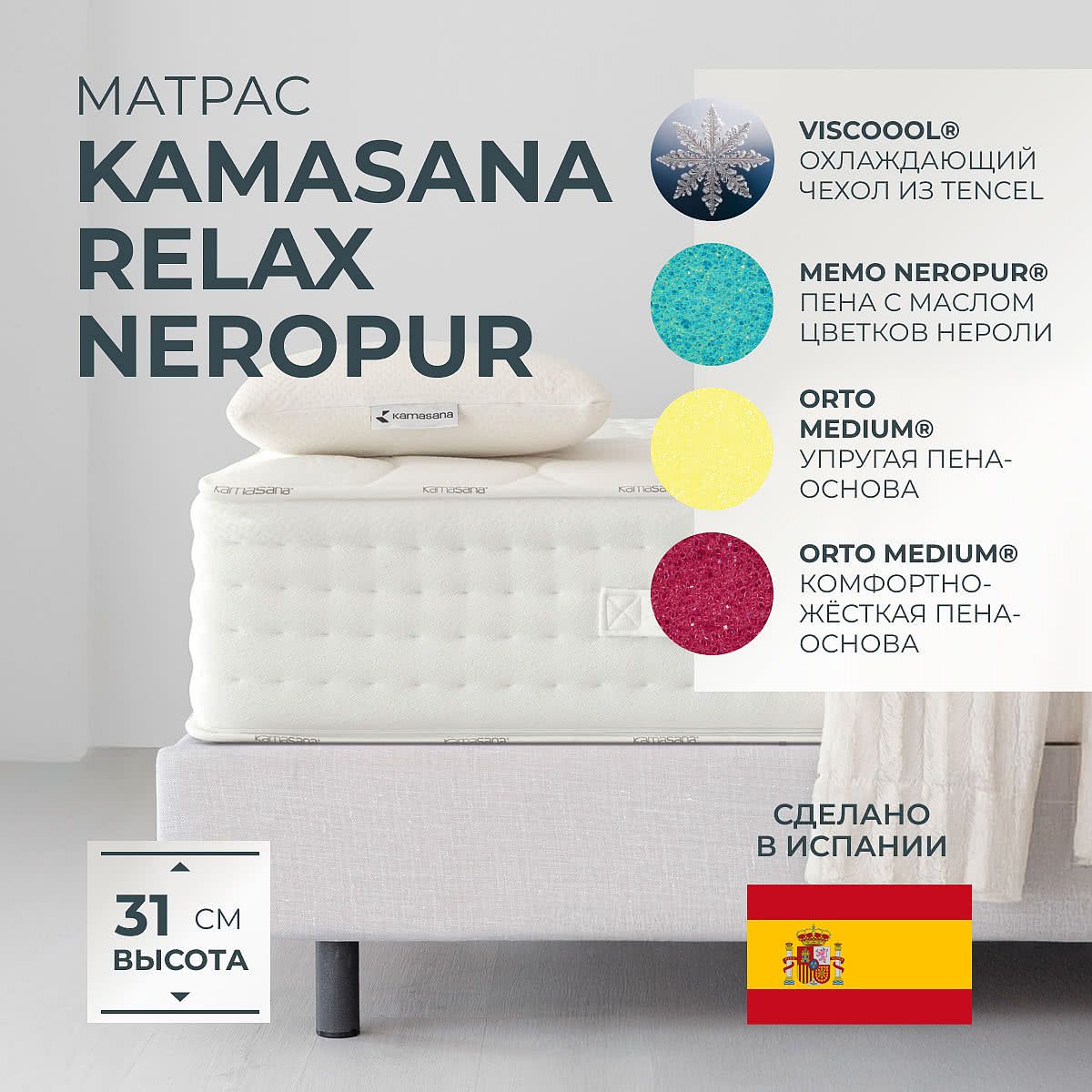Матрас «Kamasana Relax Neropur» — средней жесткости, которая подходит большинству людей среднего телосложения. Это — оптимальный выбор и детям, и взрослым, и пожилым людям.