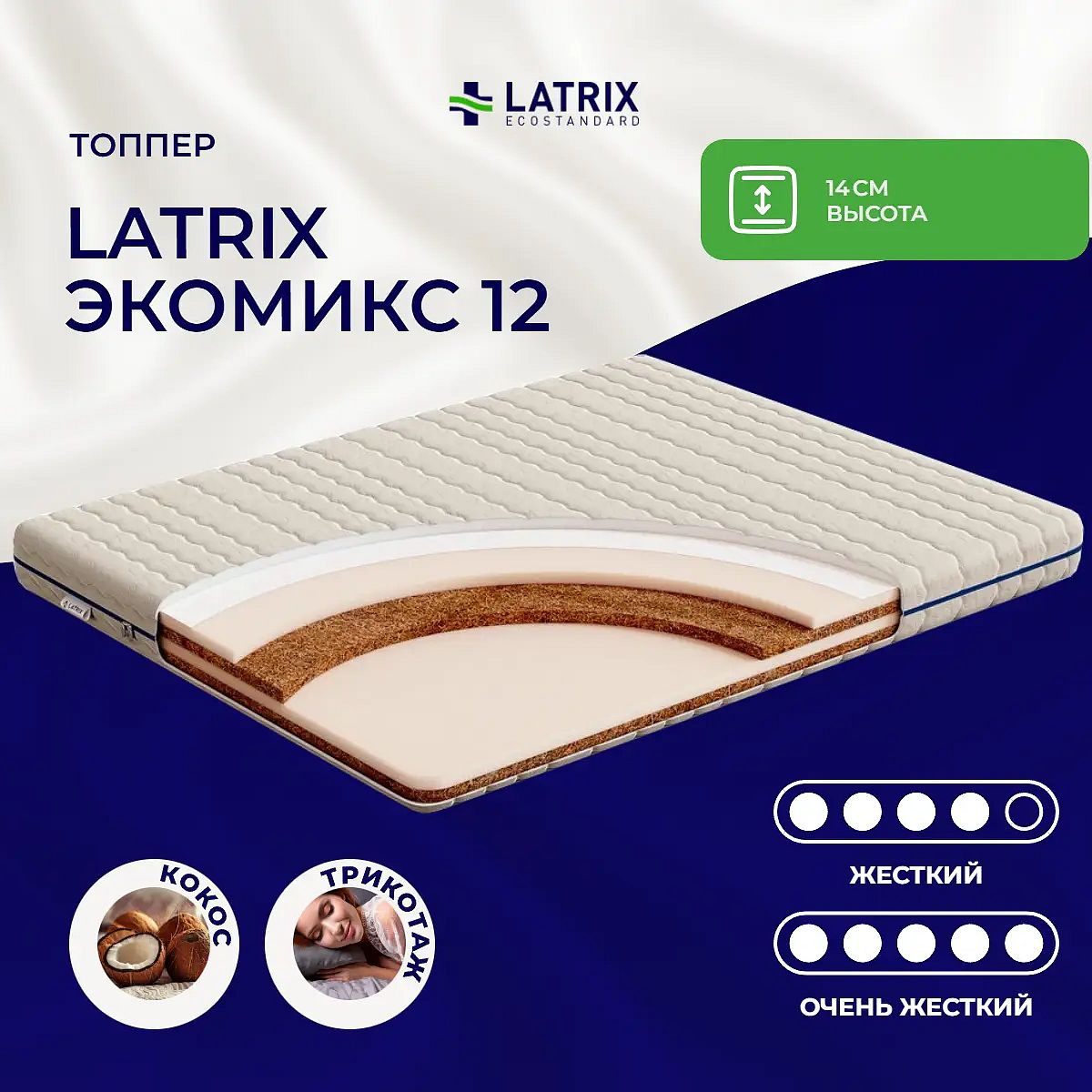 Кокос — натуральный материал, койра отлично дышит, придает матрасу «Экомикс 12» жесткость и упругость.