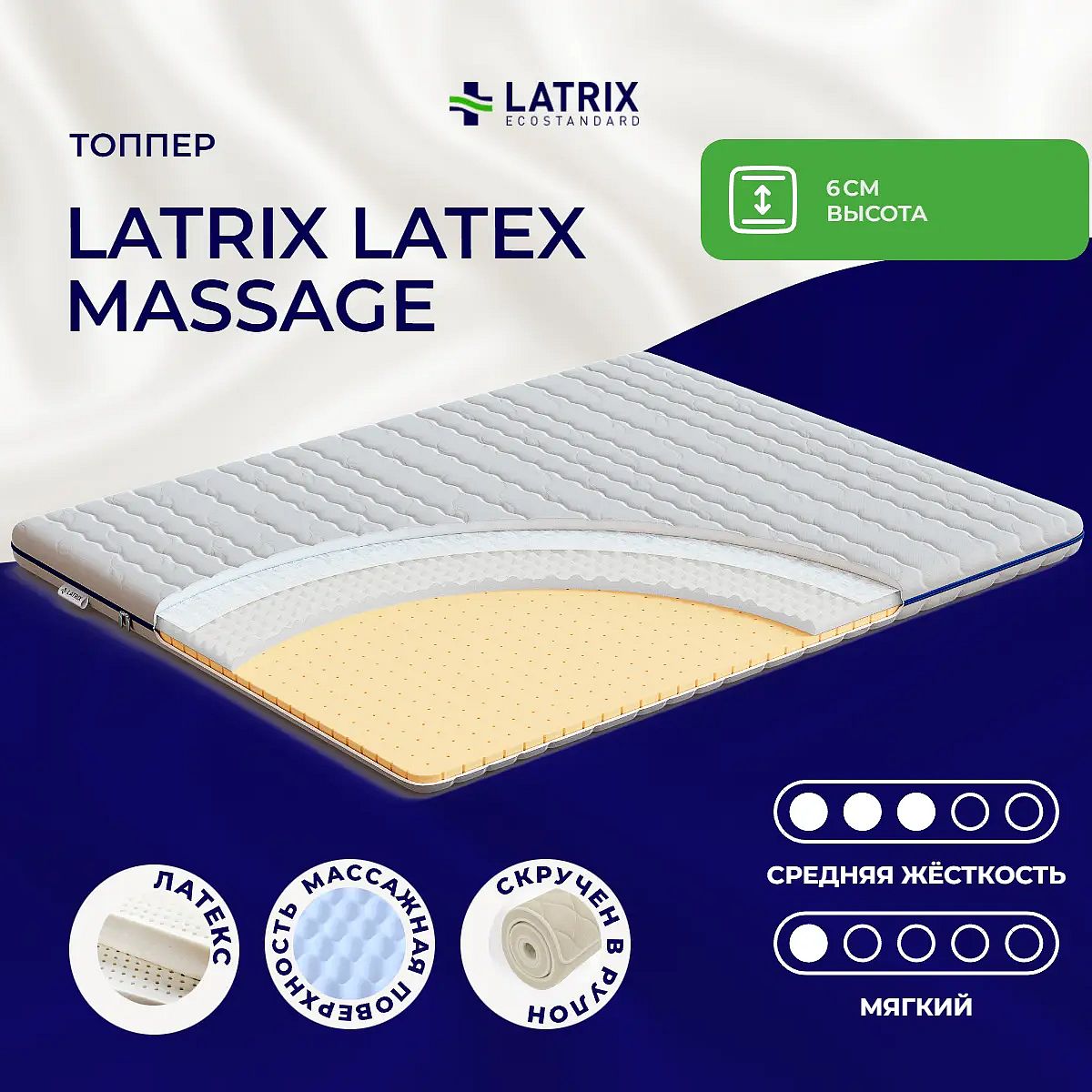 Преимущество матраса Latex Massage — он имеет 2 различные по жесткости стороны: средне-жесткую и мягкую.