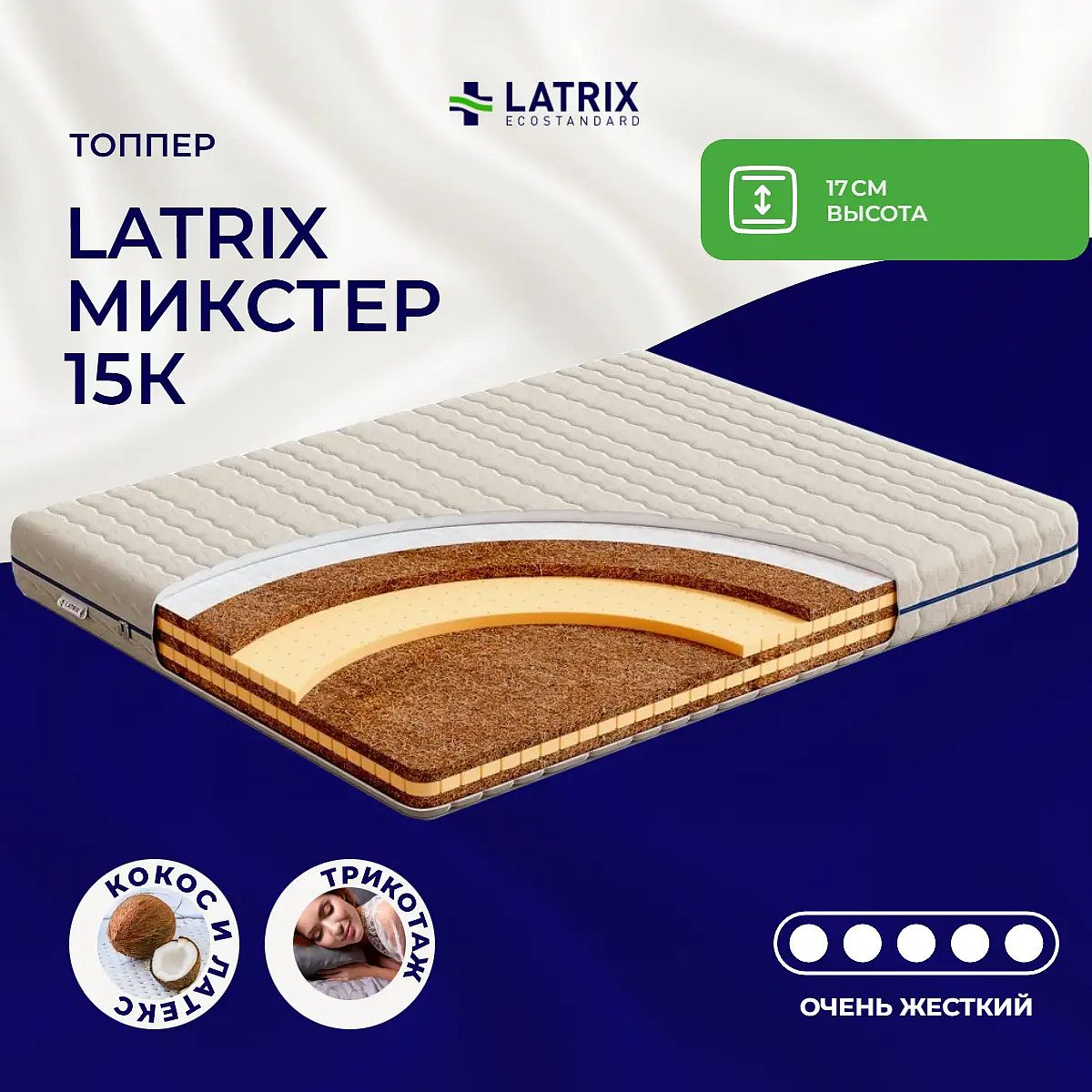 Матрас экстремальной жесткости «Latrix Микстер 15К» — для любителей спать буквально «на доске» или для новорожденных.