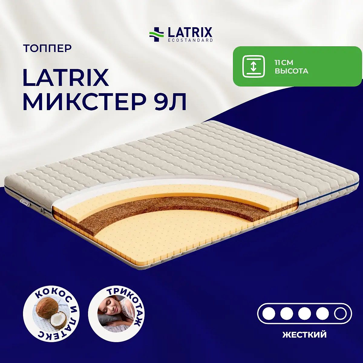 Матрас высокой жесткости «Latrix Микстер 9Л» — оптимальный выбор для уверенной поддержки позвоночника. Именно такие модели обычно рекомендуют подросткам, спортсменам или людям с проблемами позвоночника.