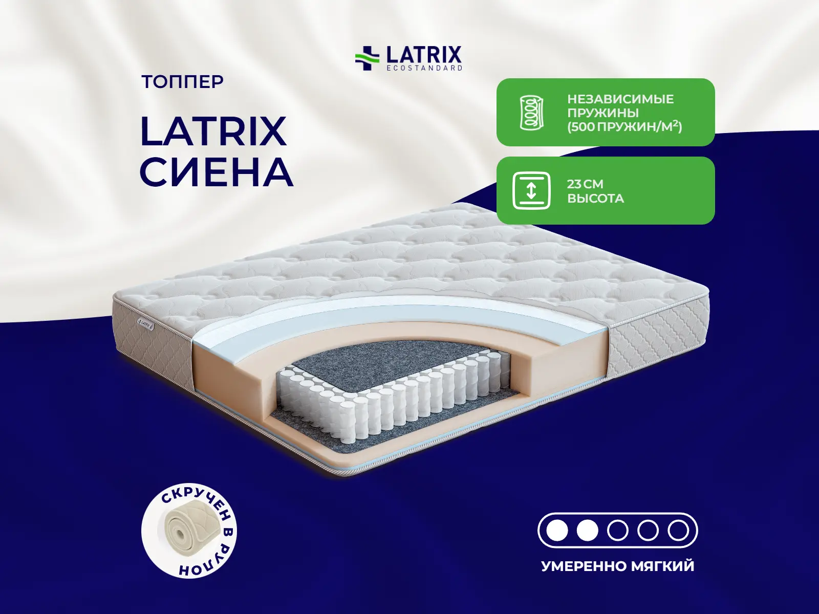 Средне-мягкий матрас «Latrix Сиена» просто создан для настоящего ценителя комфорта. Такая модель отлично подойдет людям с небольшим весом.