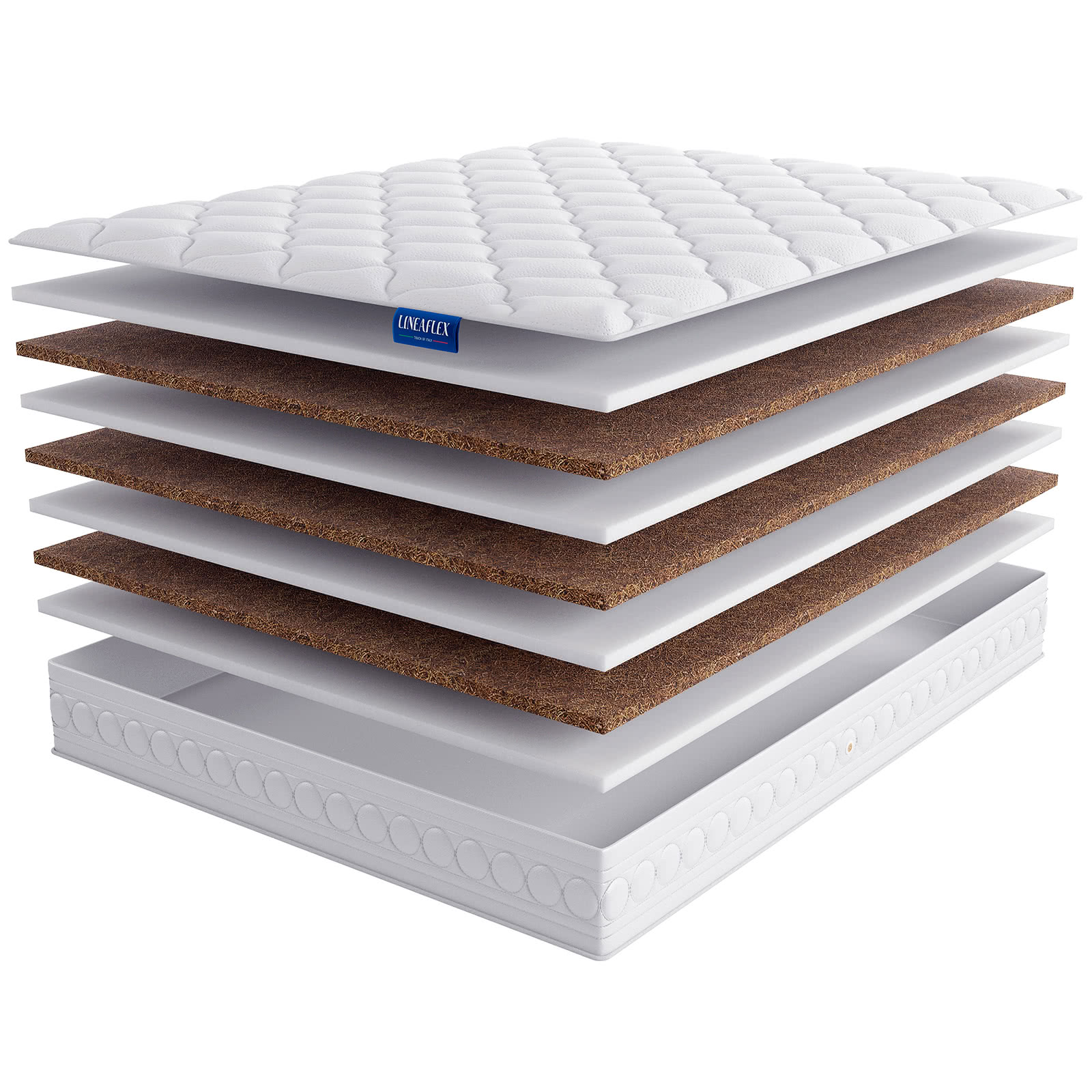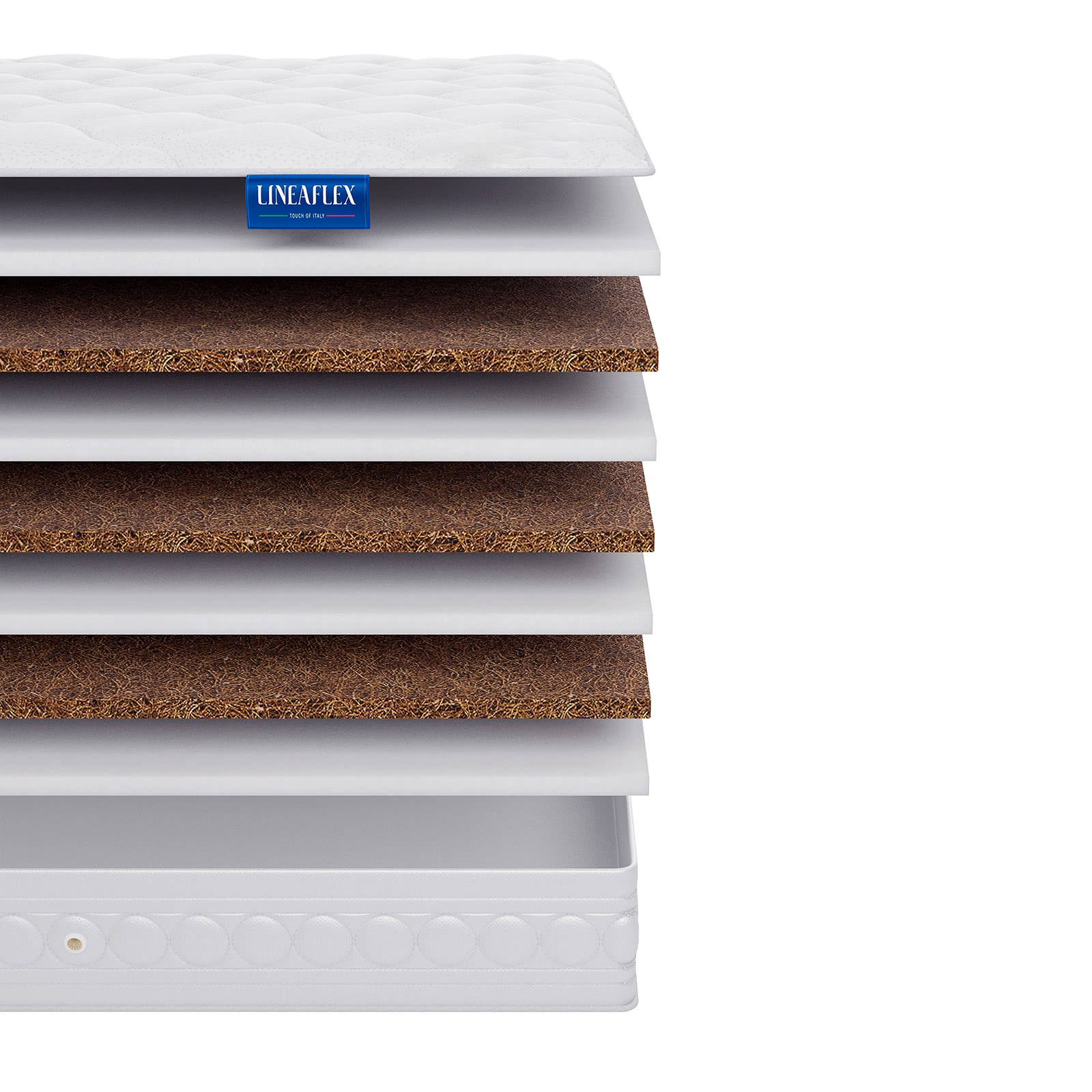 Беспружинный анатомический матрас. Изготовлен из высокотехнологичной пены Ergoflex и натуральной кокосовой койры, позволяющих ощутить высокий уровень комфорта.Натуральная пена на водной основе Ergoflex . Латексированная кокосовая койра. Слои кокоса (3 слоя по 3см) чередуюясь со слоями Ergoflex (4 слоя по 3см) создают матрас, способный обеспечить отличную поддержку. Важными свойствами этих натуральных материалов является антистатичность, антиаллергенность, хорошая проветриваемость. Чехол Classico из трикотажного антибактериального полотна. Стежка выполнена из файбера - гипоаллергенного, экологически чистого и нетоксичного материала, не впитывающего влагу и запахи. Обеспечивает высокую теплоизоляцию, предотвращает слеживание при длительной эксплуатации. Высота - 21 см.