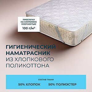 Чехол: поликоттон.Высота, см: 0,5. Крепится на матрас с помощью резинок. Возможна стирка в стиральной машине.