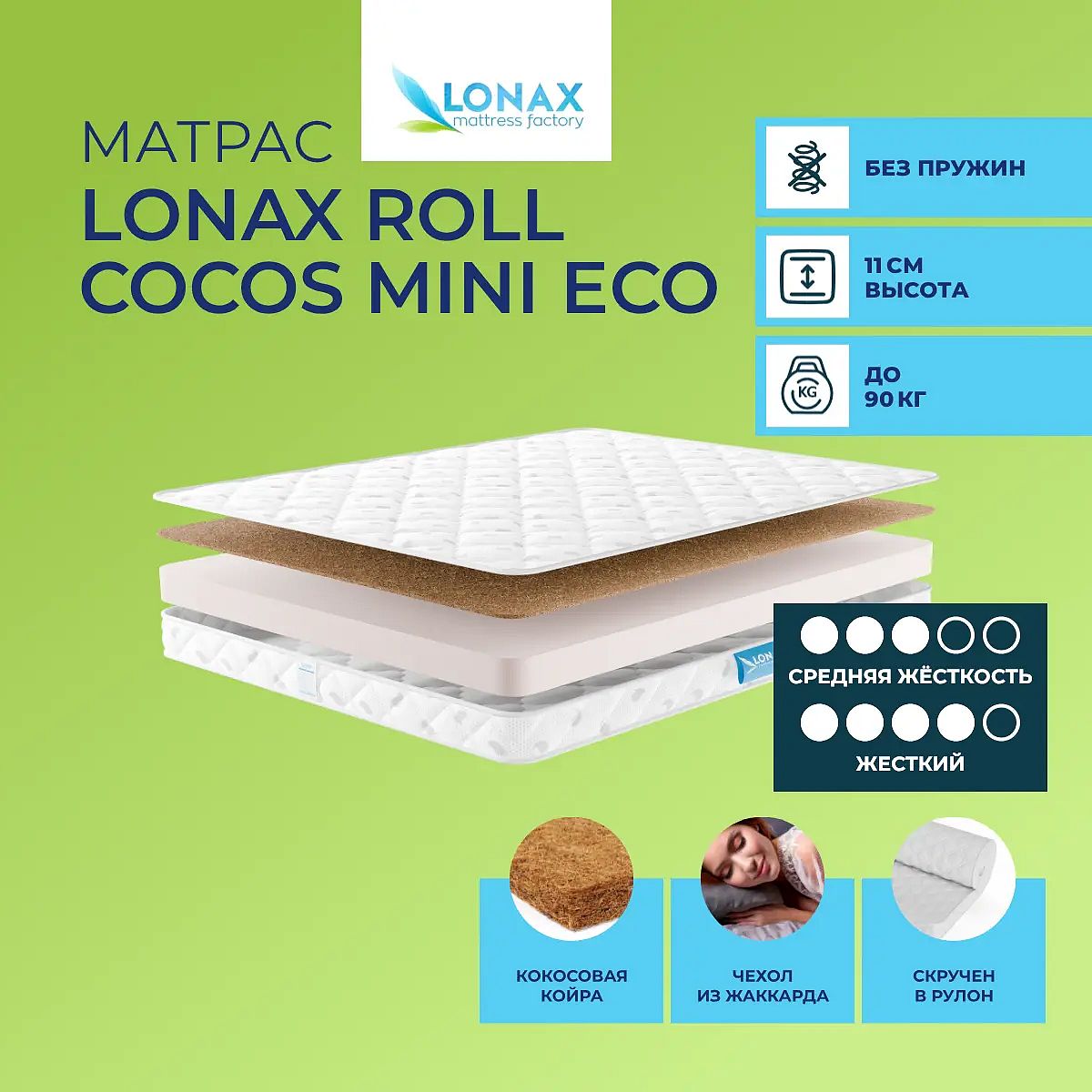 Матрас Lonax Roll Cocos Mini Eco 80х85 смАртикул С-32589