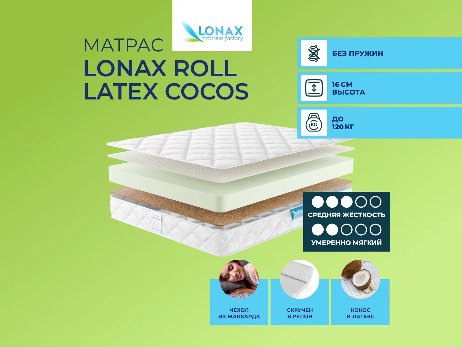Матрас Lonax Roll Latex Cocos 100х140 смАртикул С-80607