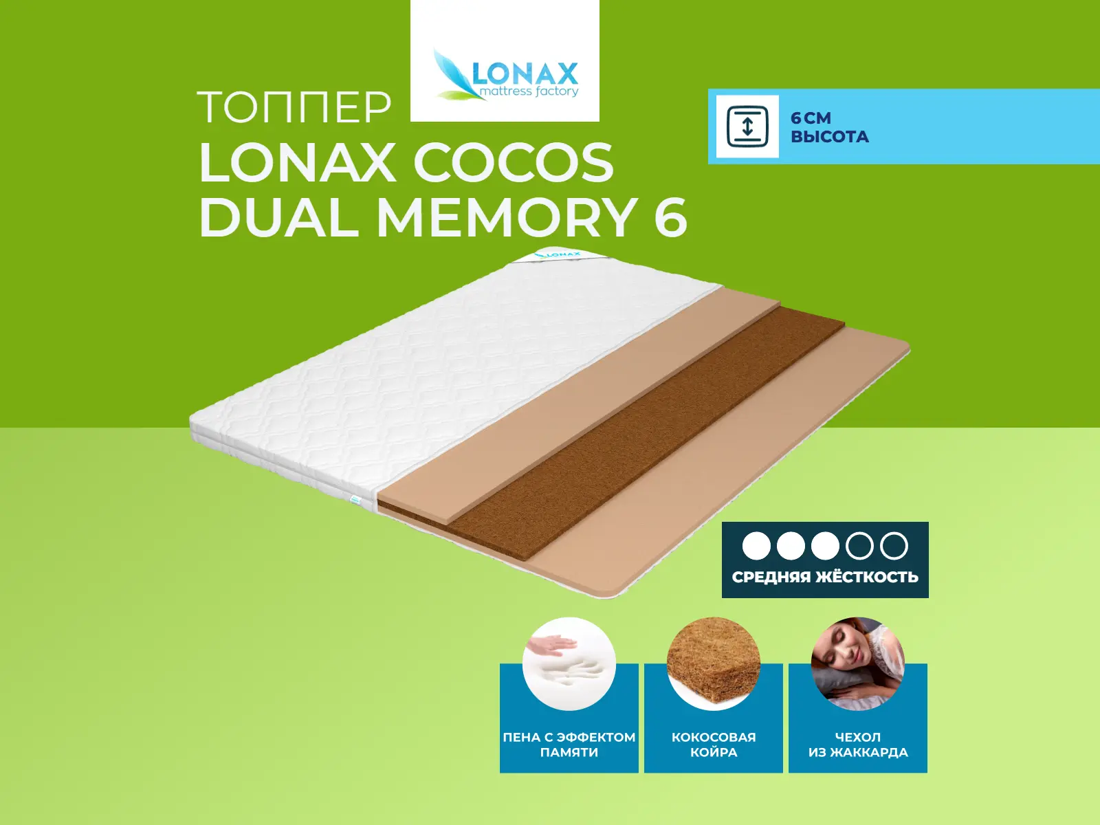 Топпер Lonax Cocos Dual Memory 6 65х205 смАртикул С-92962