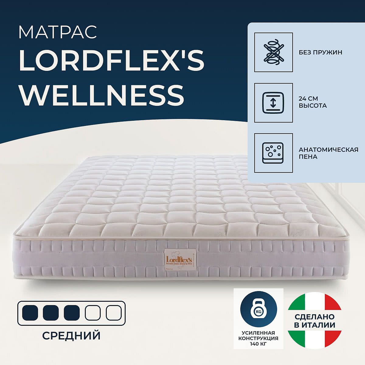 Матрас высокой жесткости «Lordflex's Wellness» — оптимальный выбор для уверенной поддержки позвоночника. Именно такие модели обычно рекомендуют подросткам, спортсменам или людям с проблемами позвоночника.