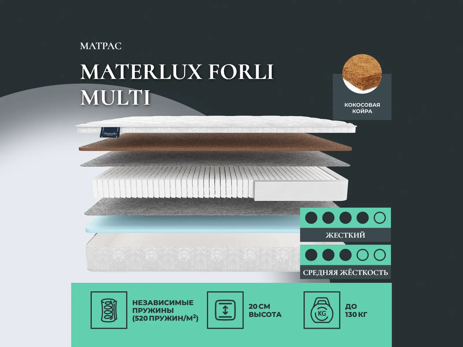 Преимущество матраса Forli Multi — он имеет 2 различные по жесткости стороны: жесткую и средне-жесткую.